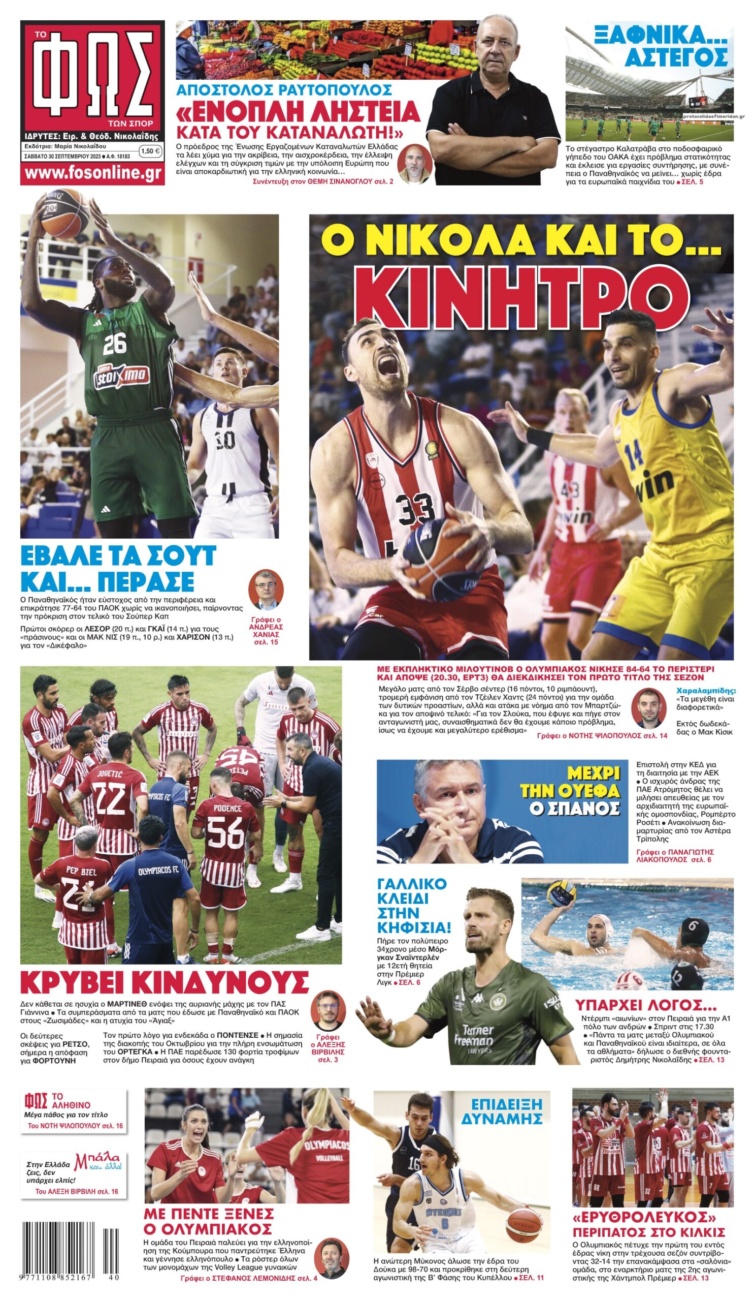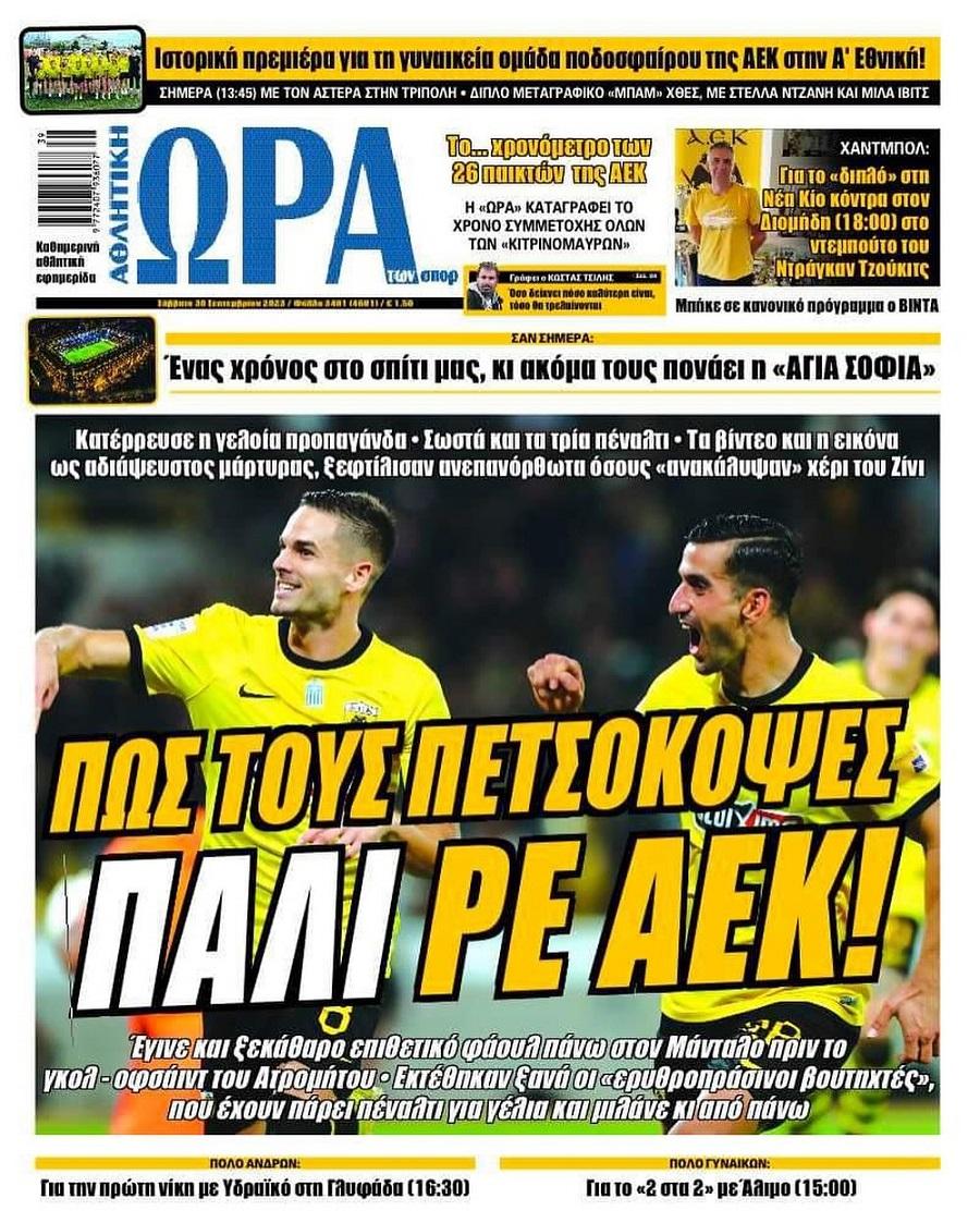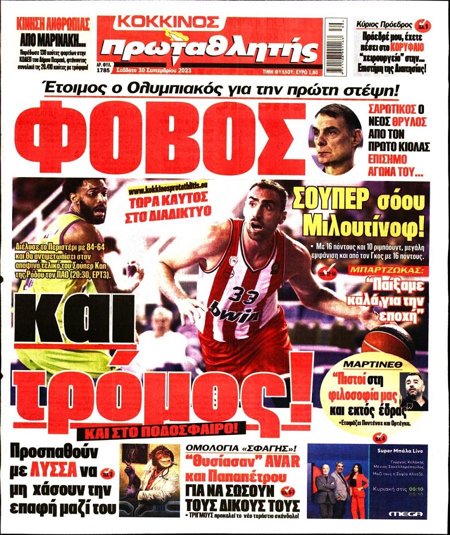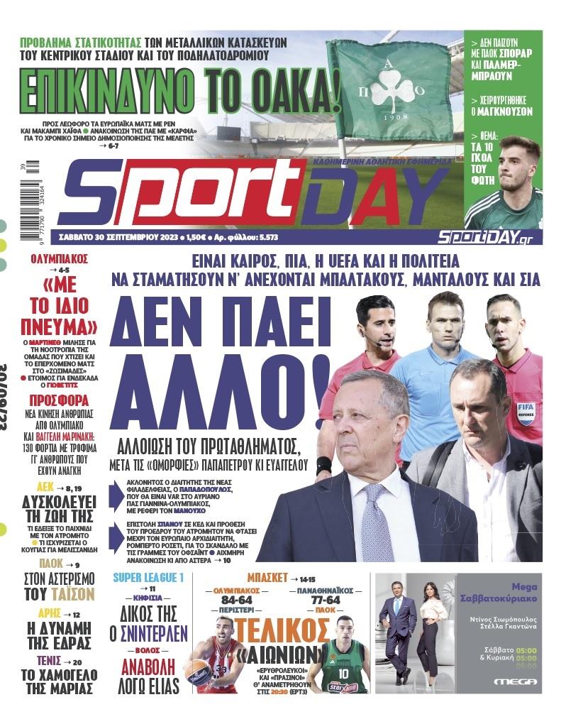Πρωτοσέλιδα αθλητικών εφημερίδων για το Σάββατο 30 Σεπτεμβρίου 2023