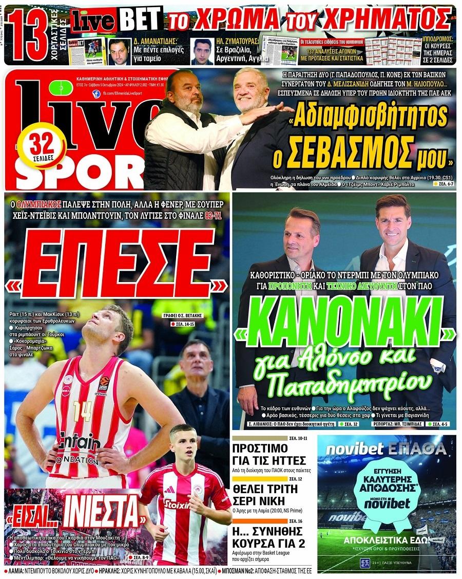 Πρωτοσέλιδα αθλητικών εφημερίδων για το Σάββατο 5 Οκτωβρίου 2024