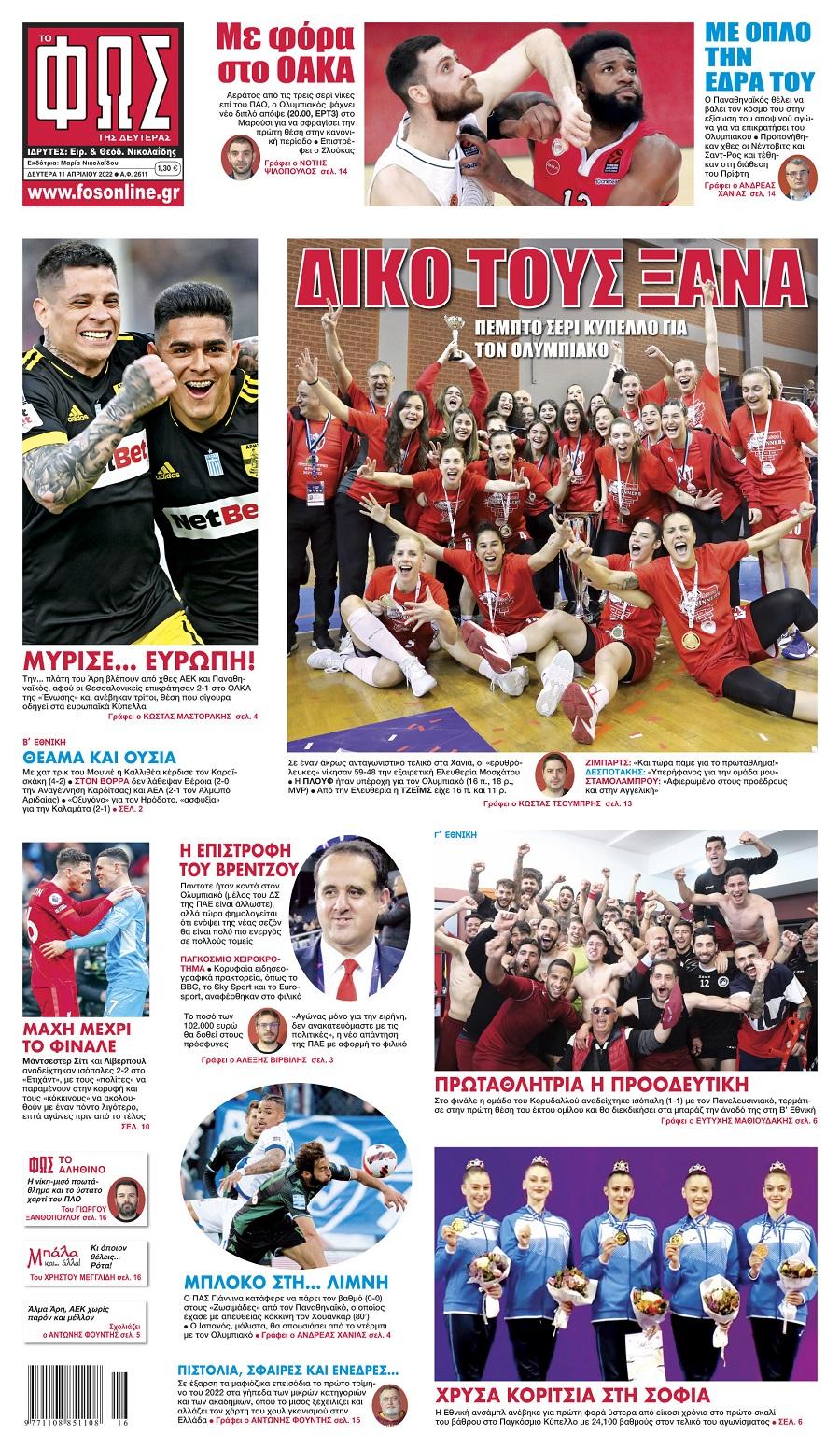 Πρωτοσέλιδα αθλητικών εφημερίδων για τη Δευτέρα 11 Απριλίου 2022. Δείτε αναλυτικά τι αναφέρουν στη… βιτρίνα τους οι εφημερίδες.