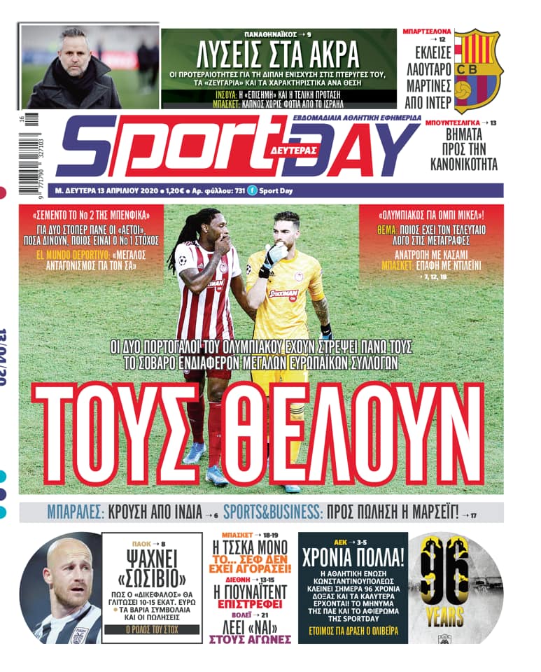 Πρωτοσέλιδα για τη Δευτέρα 13 Απριλίου 2020