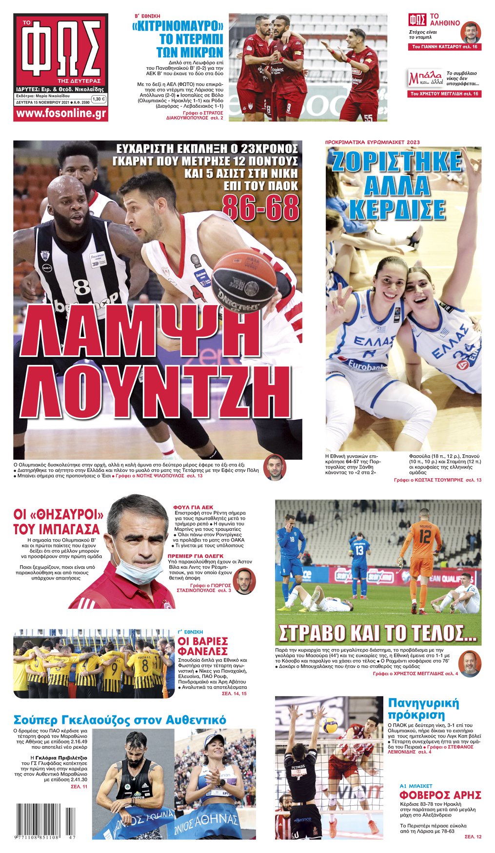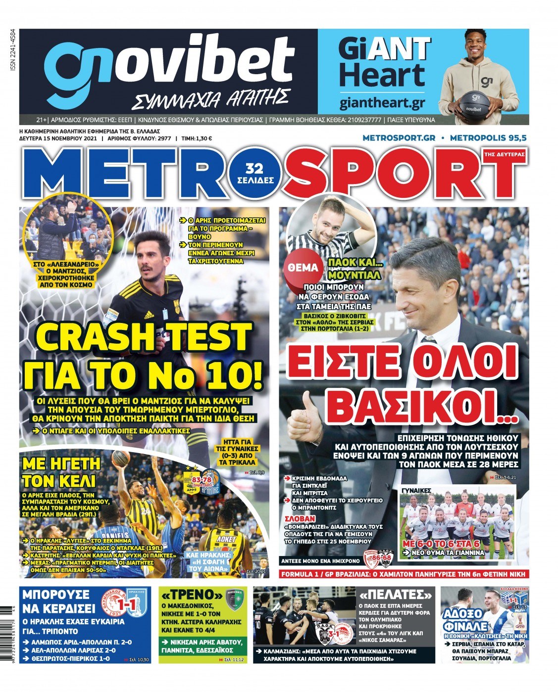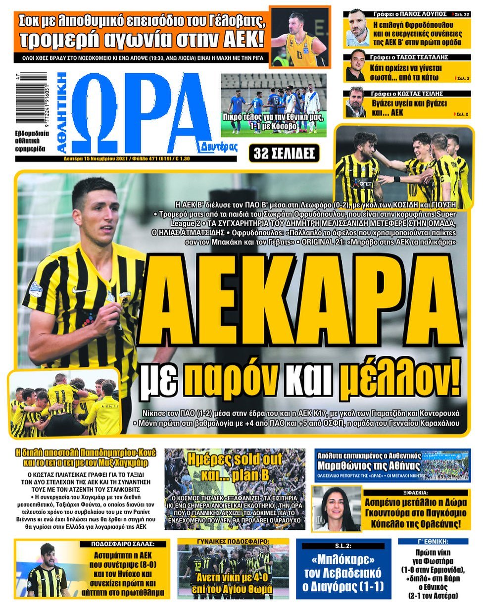 Πρωτοσέλιδα αθλητικών εφημερίδων για τη Δευτέρα 15 Νοεμβρίου 2021. Τι αναφέρουν στη… βιτρίνα τους οι εφημερίδες σε Αθήνα και Θεσσαλονίκη.