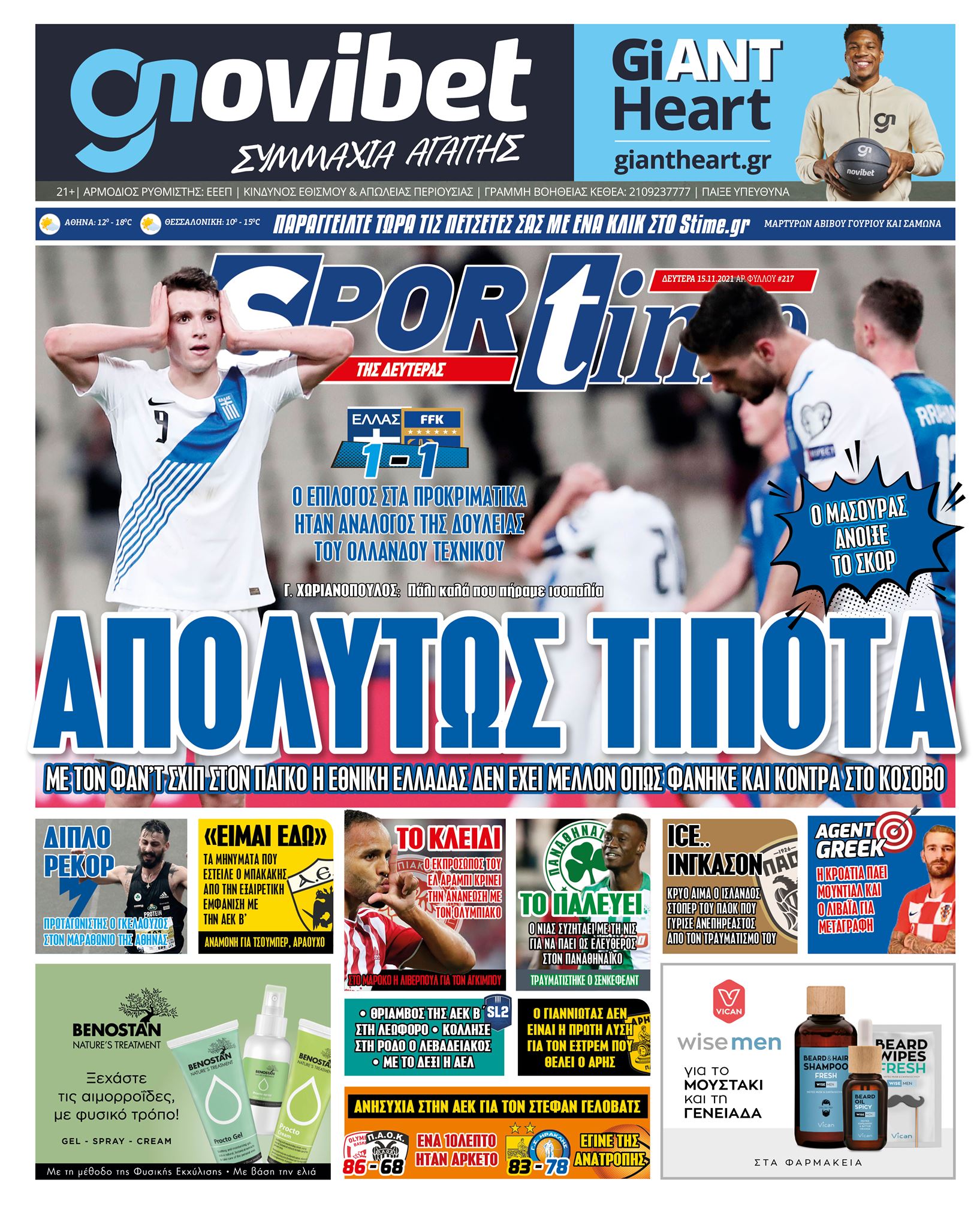 Τι αναφέρουν στα πρωτοσέλιδα οι αθλητικές εφημερίδες στις 15 Νοεμβρίου