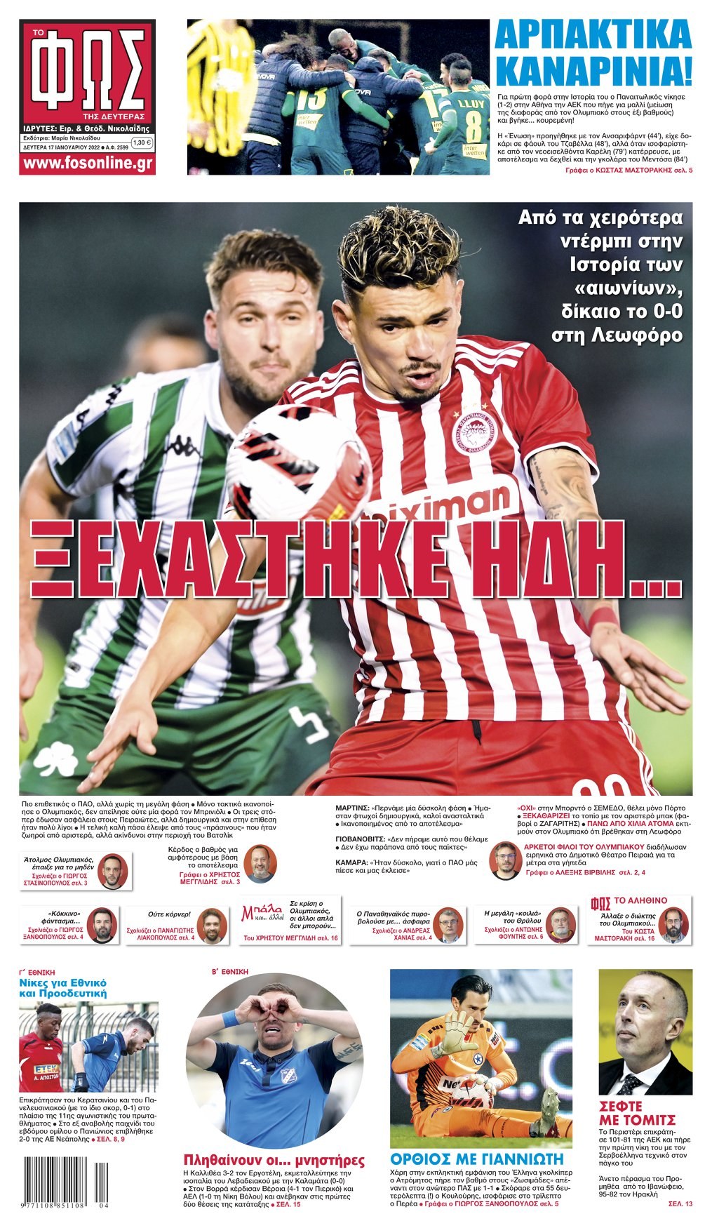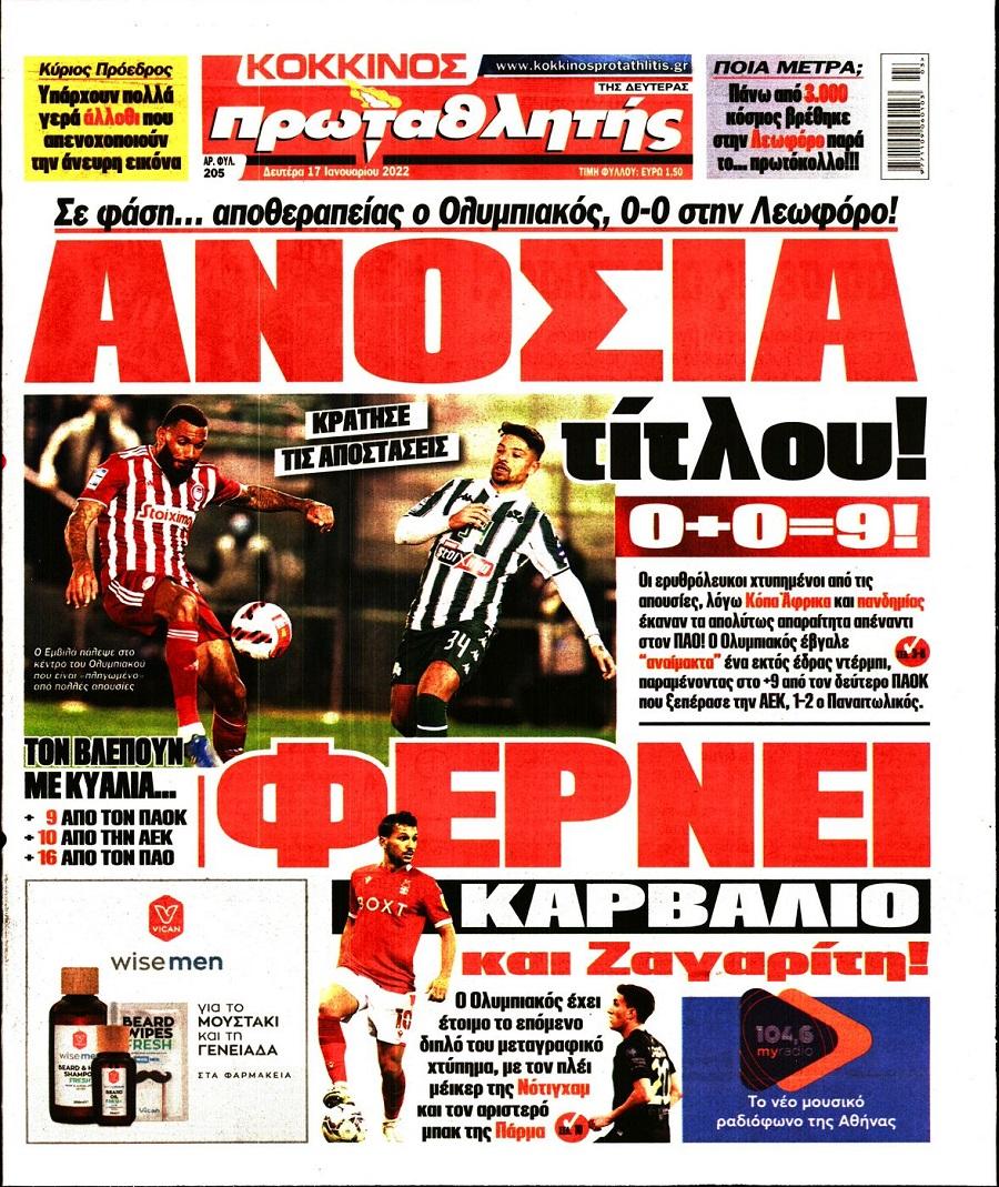 Πρωτοσέλιδα αθλητικών εφημερίδων για τη Δευτέρα 17 Ιανουαρίου 2022. Τι αναφέρουν στη… βιτρίνα τους οι εφημερίδες σε Αθήνα και Θεσσαλονίκη.