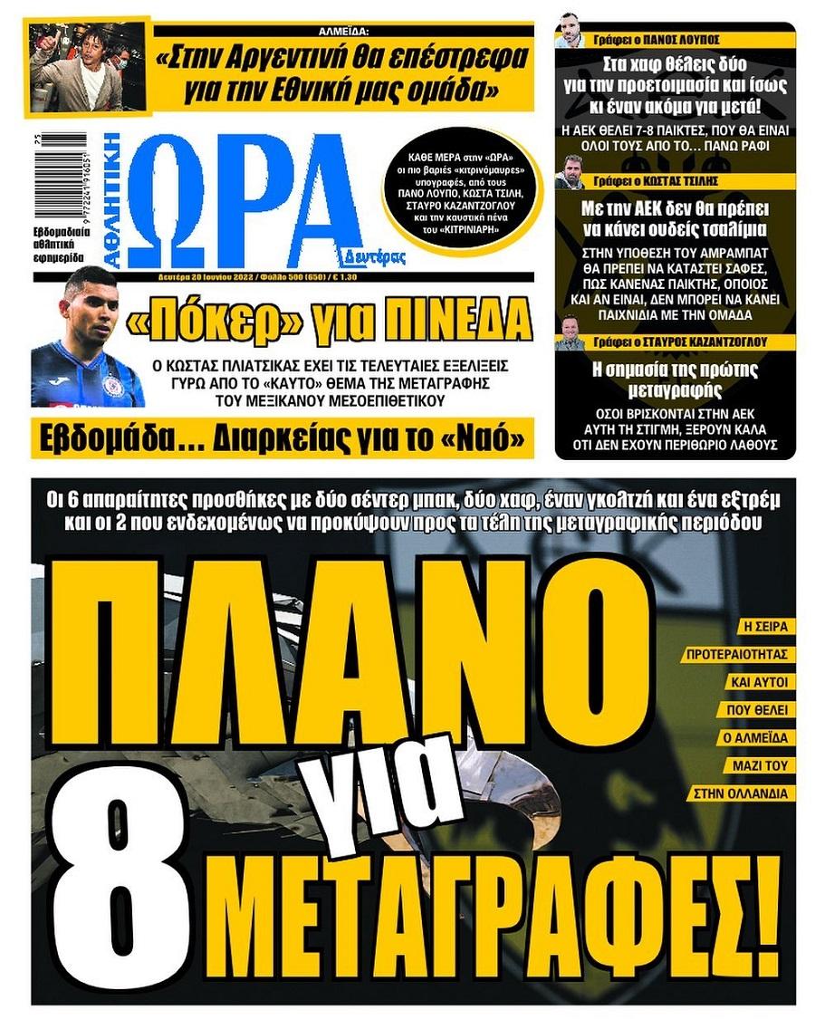 Πρωτοσέλιδα αθλητικών εφημερίδων για τη Δευτέρα 20 Ιουνίου 2022. Δείτε αναλυτικά τι αναφέρουν στη… βιτρίνα τους οι εφημερίδες.