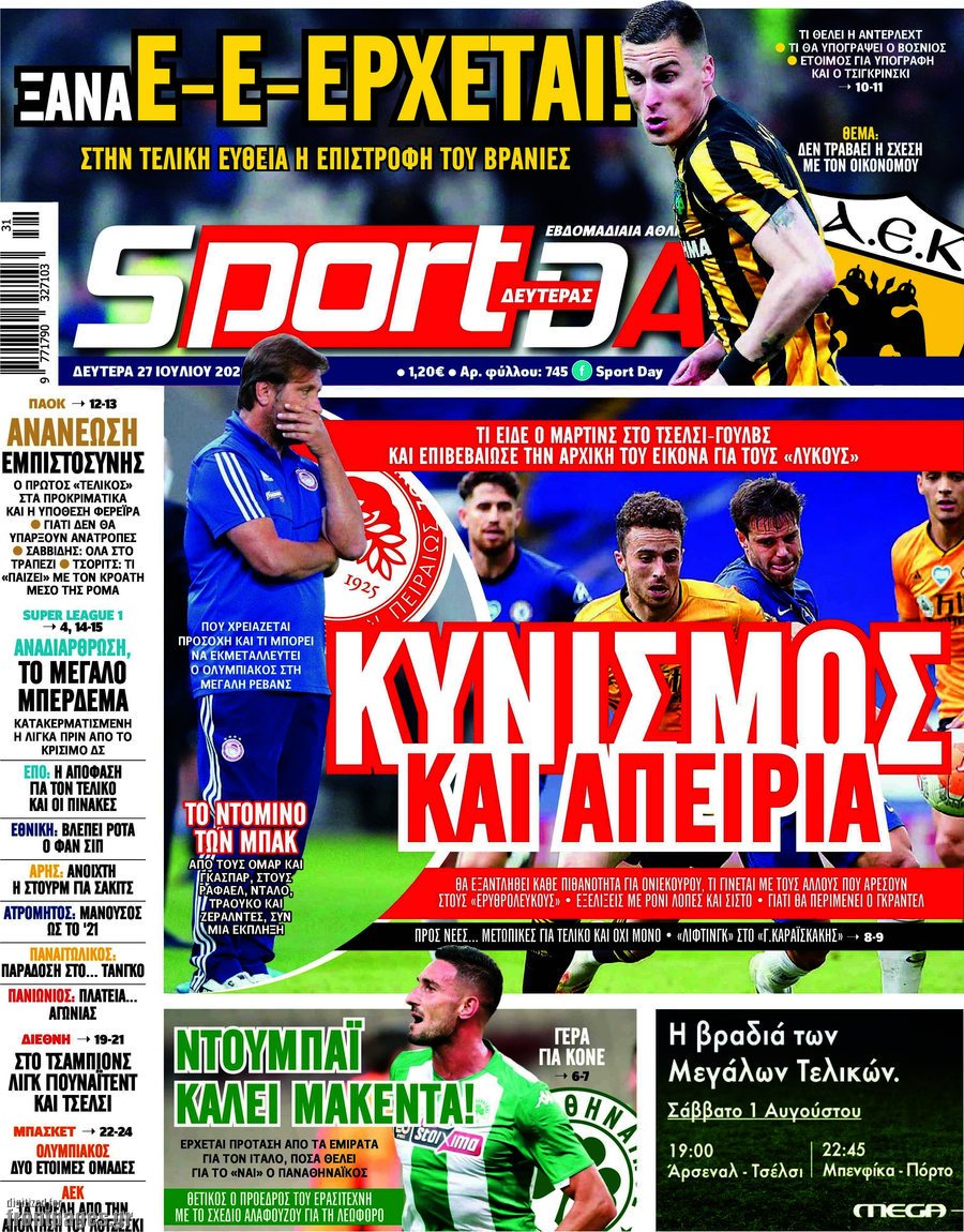 Τι αναφέρουν στη... βιτρίνα τους οι αθλητικές εφημερίδες σε Αθήνα και Θεσσαλονίκη