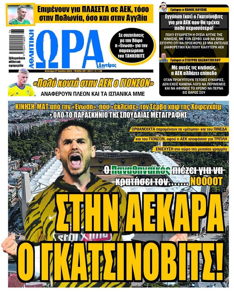 Πρωτοσέλιδα αθλητικών εφημερίδων για τη Δευτέρα 27 Ιουνίου 2022. Δείτε αναλυτικά τι αναφέρουν στη… βιτρίνα τους οι εφημερίδες.