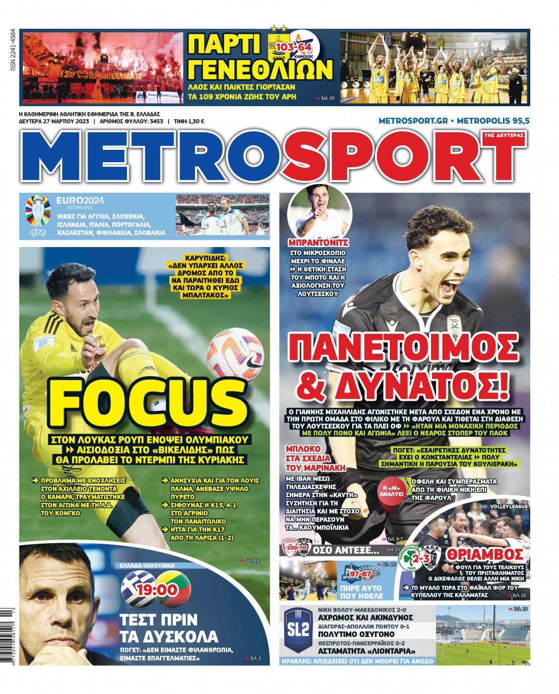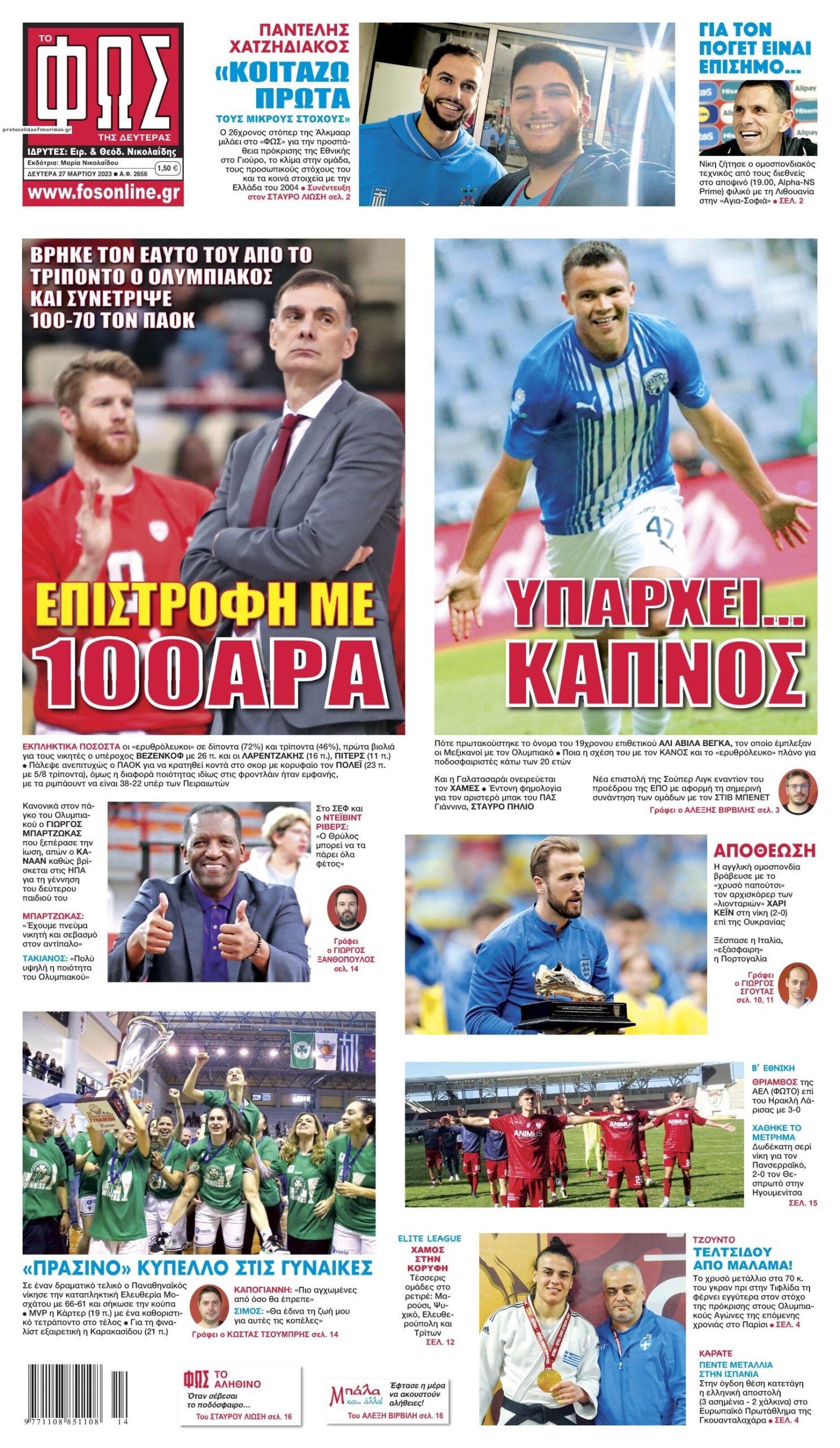 Πρωτοσέλιδα αθλητικών εφημερίδων για τη Δευτέρα 27 Μαρτίου 2023. Δείτε αναλυτικά τι αναφέρουν στη… βιτρίνα τους οι εφημερίδες.