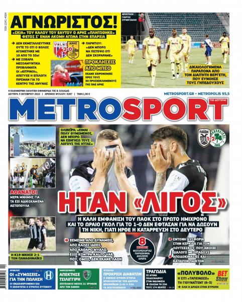 Δείτε τα πρωτοσέλιδα των αθλητικών εφημερίδων για τη Δευτέρα 3 Οκτωβρίου 2022