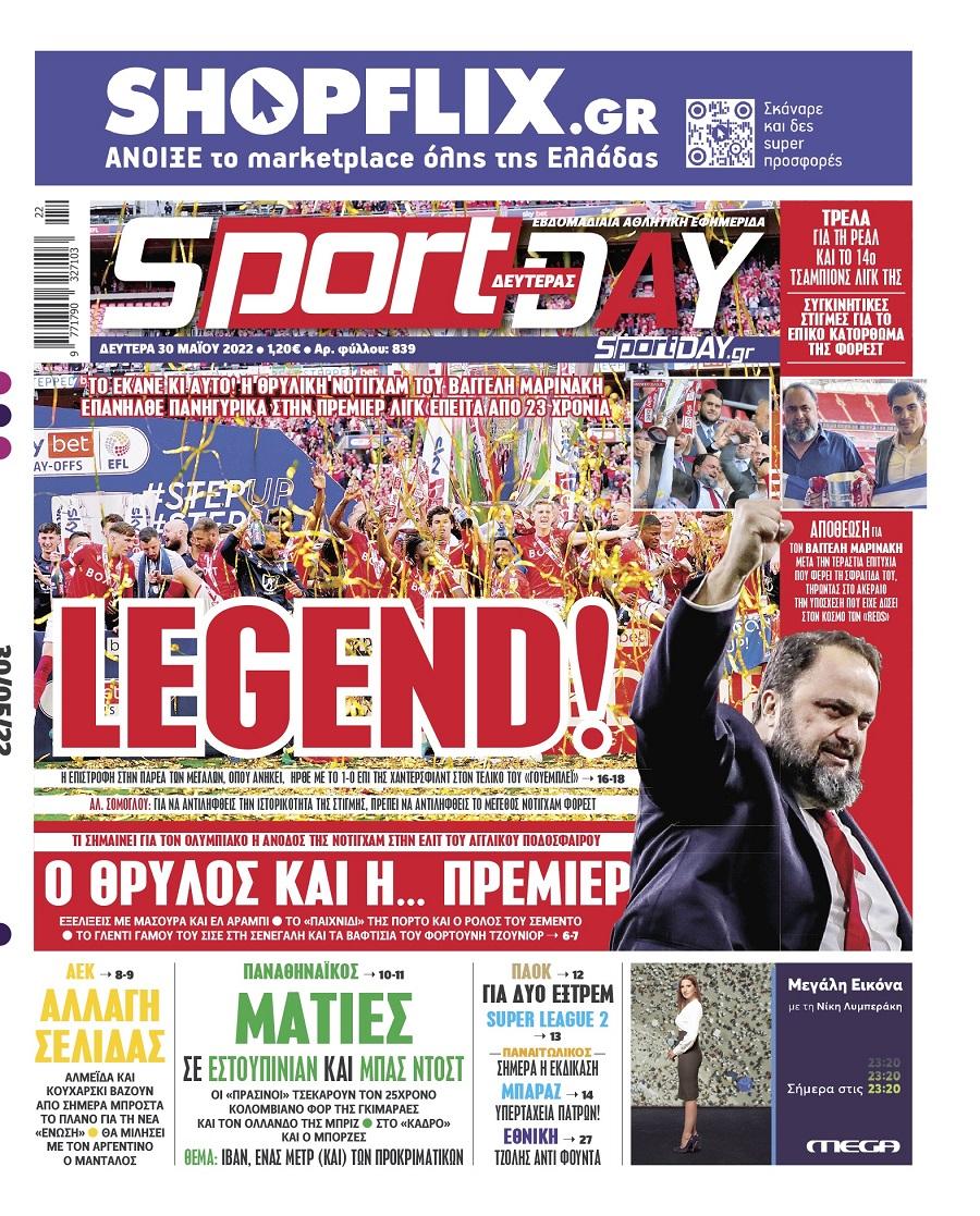 Πρωτοσέλιδα αθλητικών εφημερίδων για τη Δευτέρα 30 Μαΐου 2022. Δείτε αναλυτικά τι αναφέρουν στη… βιτρίνα τους οι εφημερίδες.