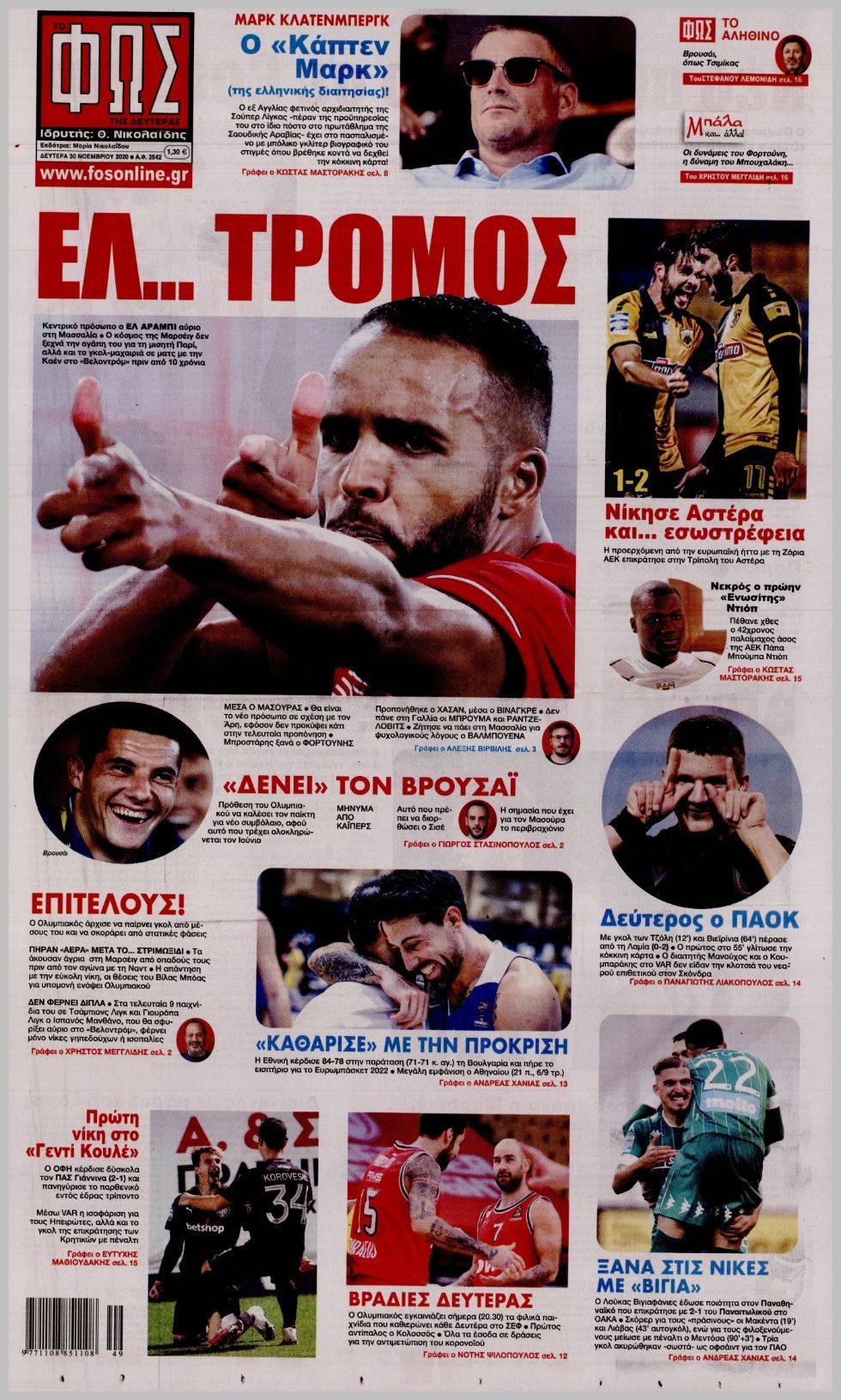 Πρωτοσέλιδα για τη Δευτέρα 30 Νοεμβρίου 2020: Δείτε τι αναφέρουν οι... βιτρίνες των αθλητικών εφημερίδων σε Αθήνα και Θεσσαλονίκη