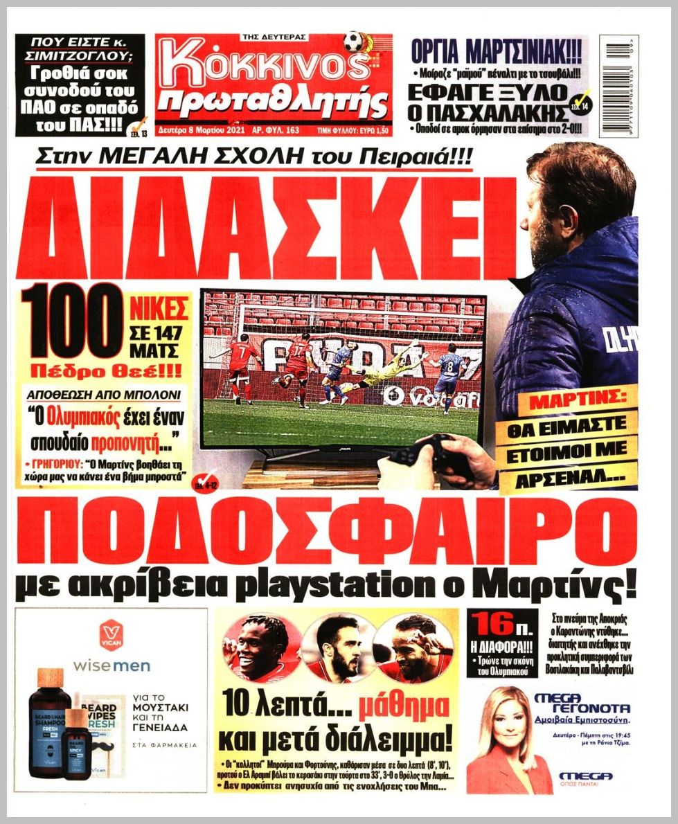 Πρωτοσέλιδα για τη Δευτέρα 8 Μαρτίου 2021: Τι αναφέρουν στη… βιτρίνα τους οι αθλητικές εφημερίδες σε Αθήνα και Θεσσαλονίκη.
