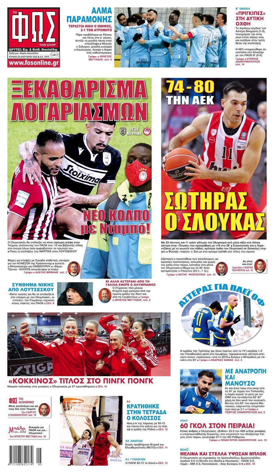 Πρωτοσέλιδα αθλητικών εφημερίδων για την Κυριακή 30 Ιανουαρίου 2022. Τι αναφέρουν στη… βιτρίνα τους οι εφημερίδες σε Αθήνα και Θεσσαλονίκη.