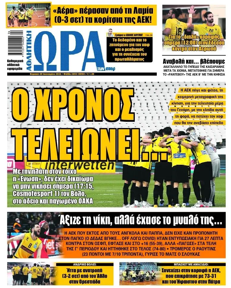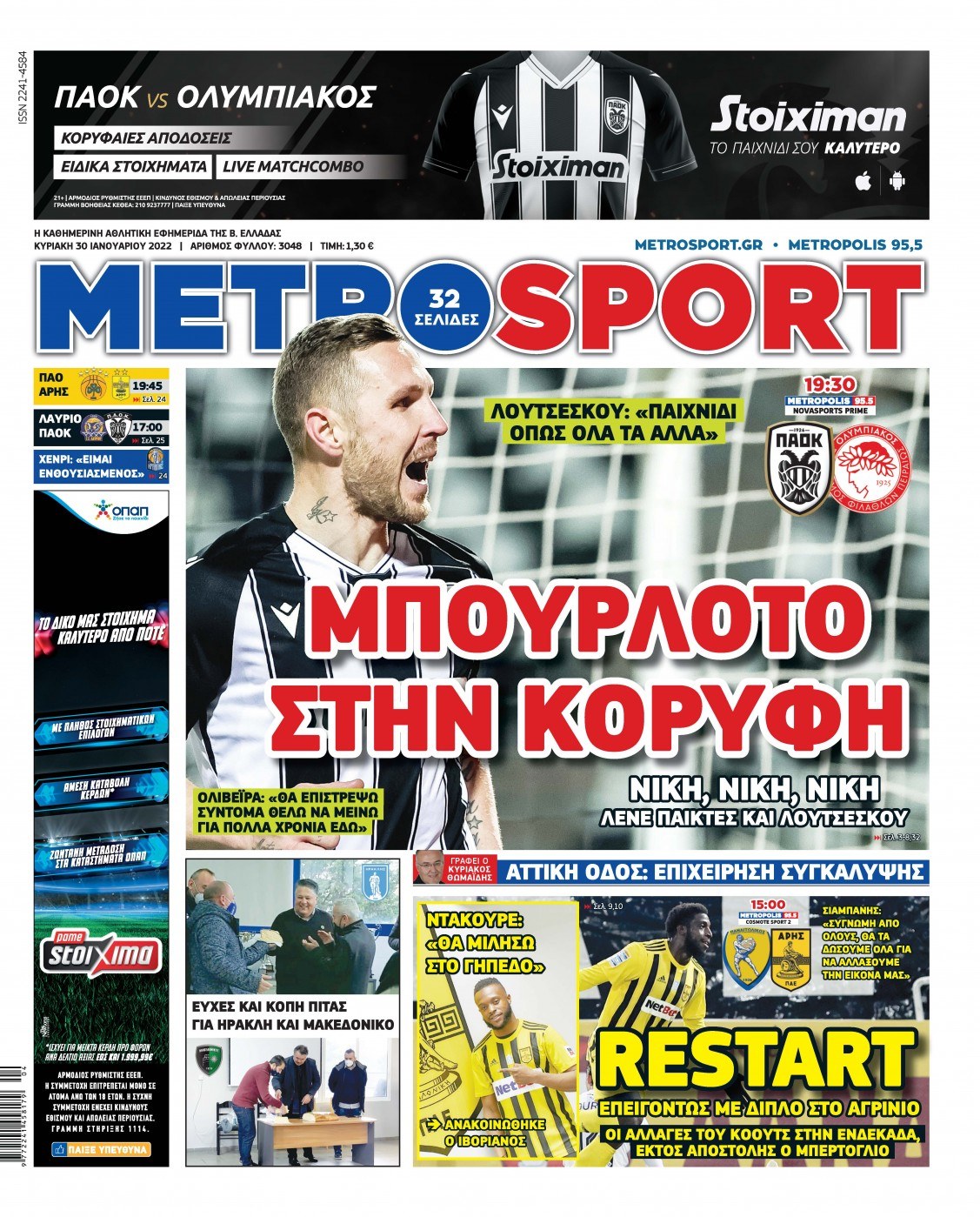 Τι αναφέρουν στα πρωτοσέλιδα οι αθλητικές εφημερίδες για την Κυριακή 30 Ιανουαρίου 2022