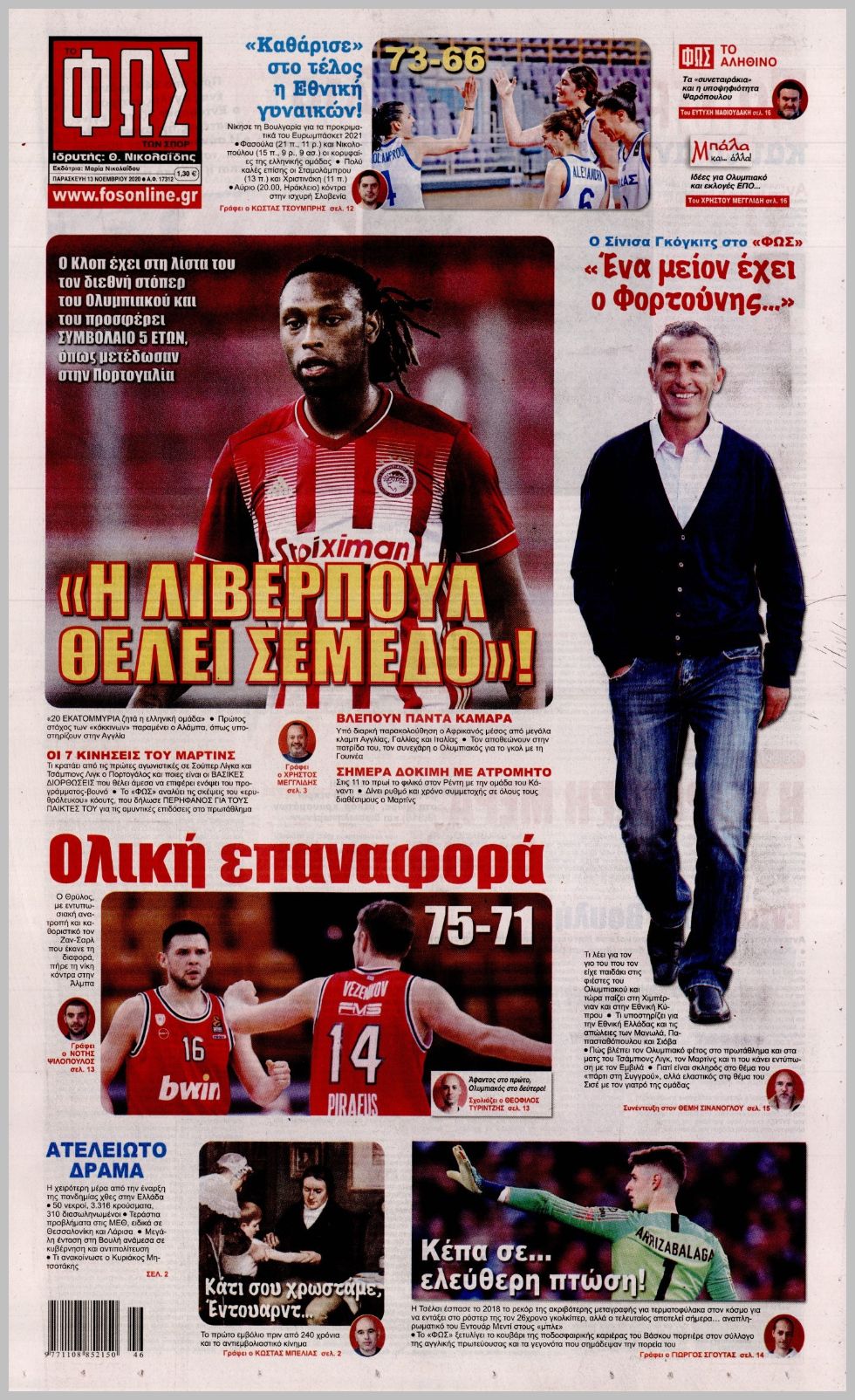 Πρωτοσέλιδα για την Παρασκευή 13 Νοεμβρίου 2020