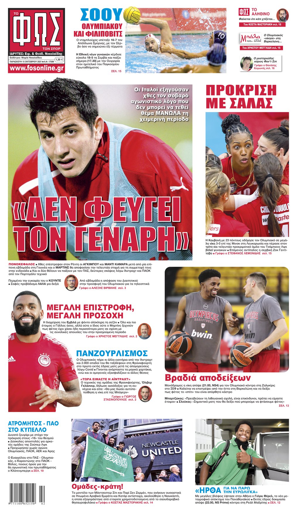 Πρωτοσέλιδα αθλητικών εφημερίδων για τη Δευτέρα 15 Οκτωβρίου 2021. Τι αναφέρουν στη… βιτρίνα τους οι εφημερίδες σε Αθήνα και Θεσσαλονίκη.
