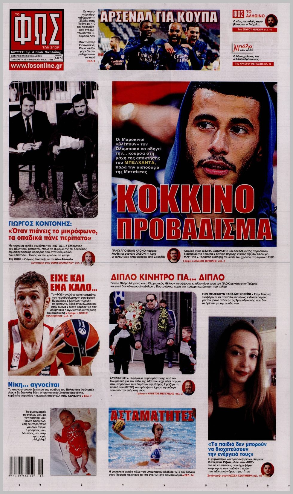 Δείτε τα αθλητικά πρωτοσέλιδα για την Παρασκευή 16 Απριλίου 2021.