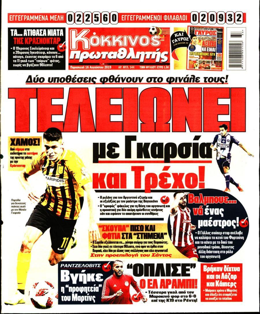 Πρωτοσέλιδα για την Παρασκευή 16 Αυγούστου 2019