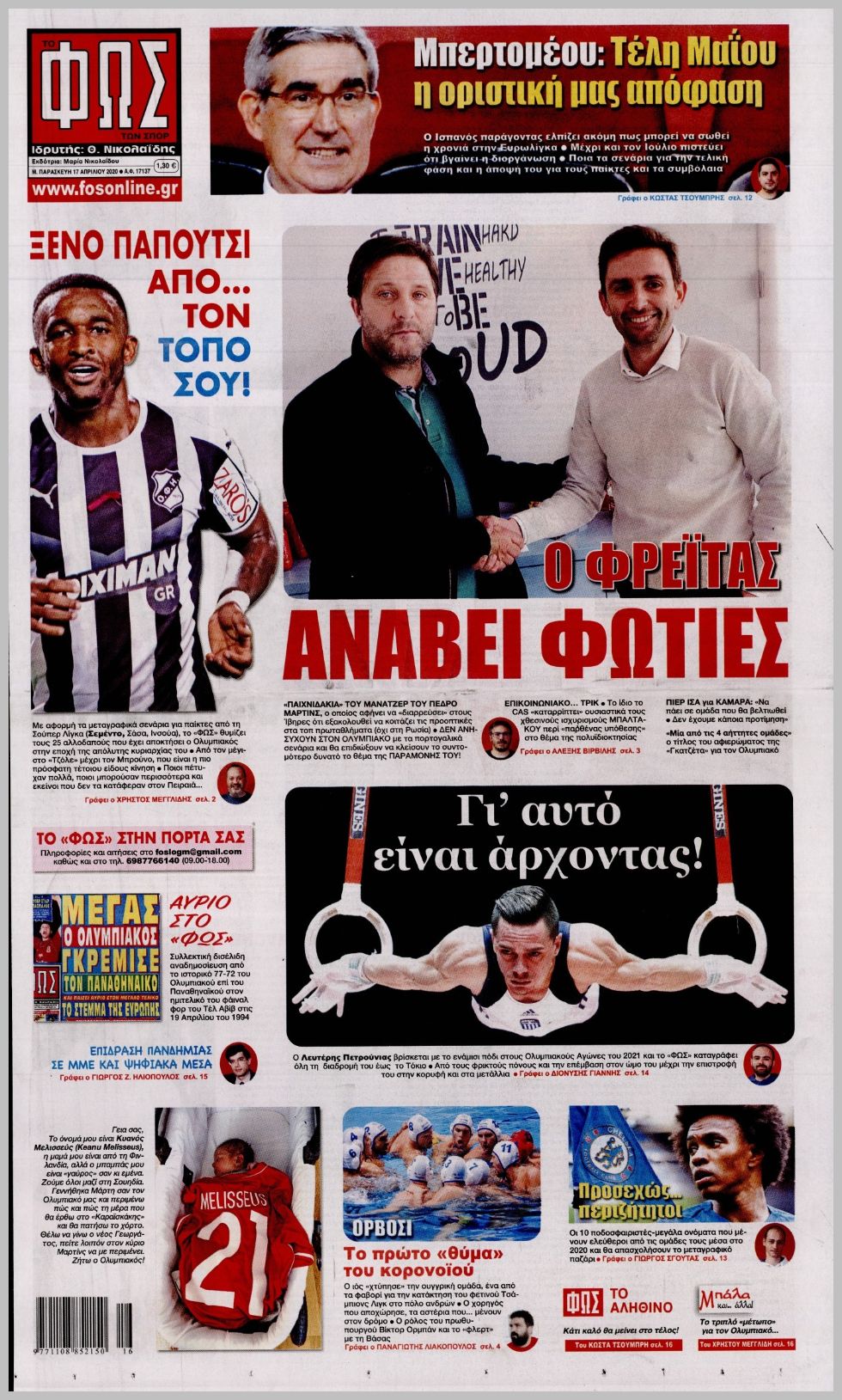 Πρωτοσέλιδα για την Παρασκευή 17 Απριλίου 2020