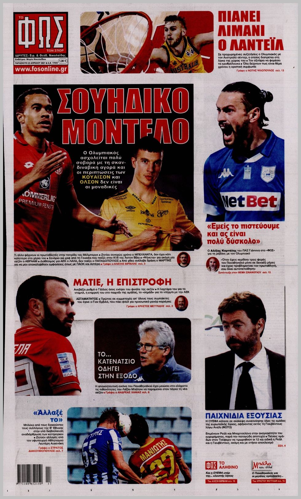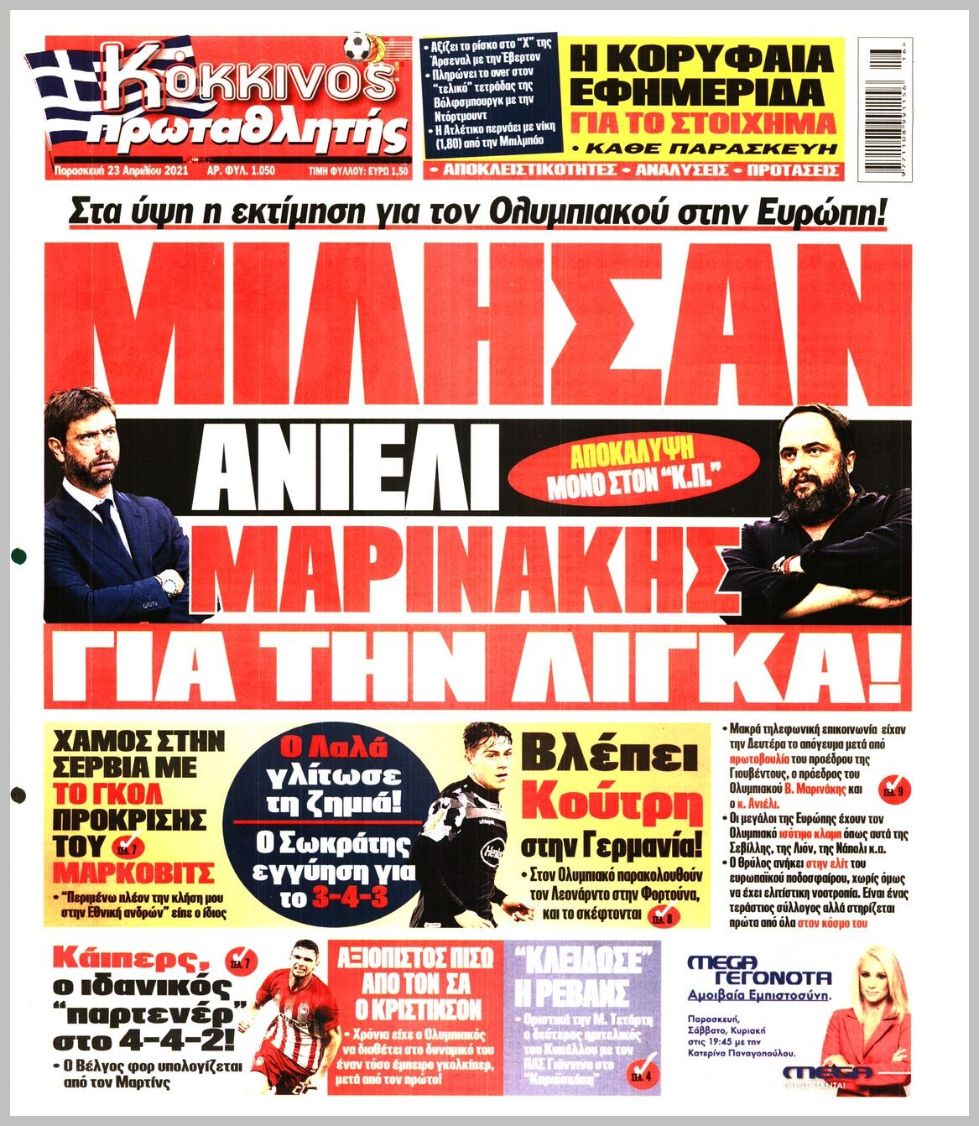 Δείτε τα αθλητικά πρωτοσέλιδα για την Παρασκευή 23 Απριλίου 2021.