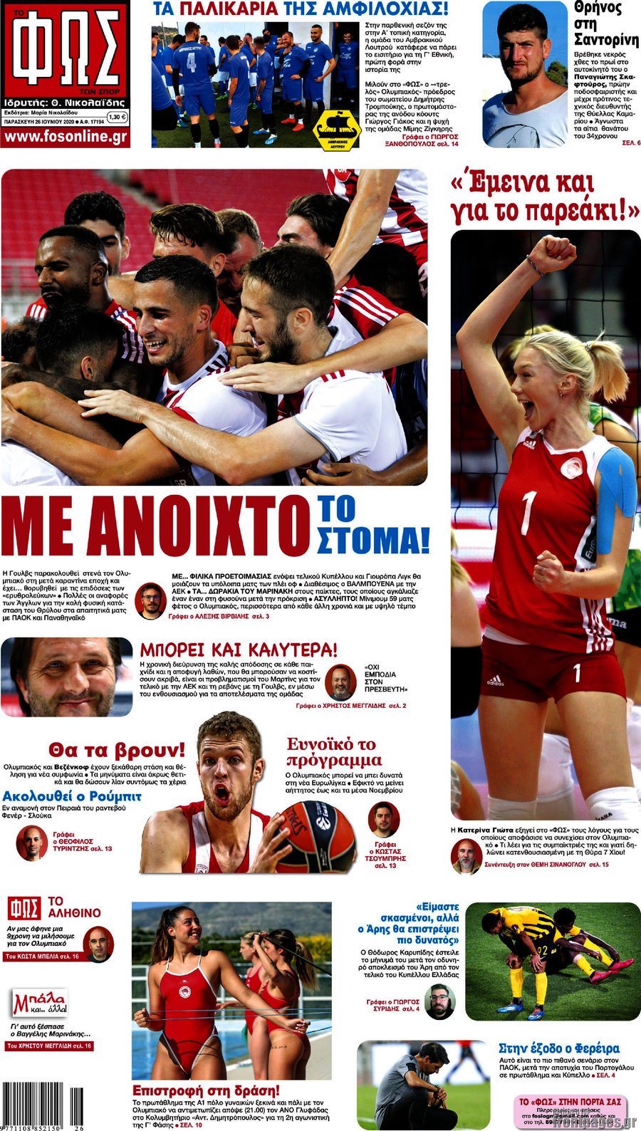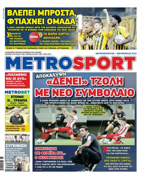 Πρωτοσέλιδα για την Παρασκευή 26 Ιουνίου 2020