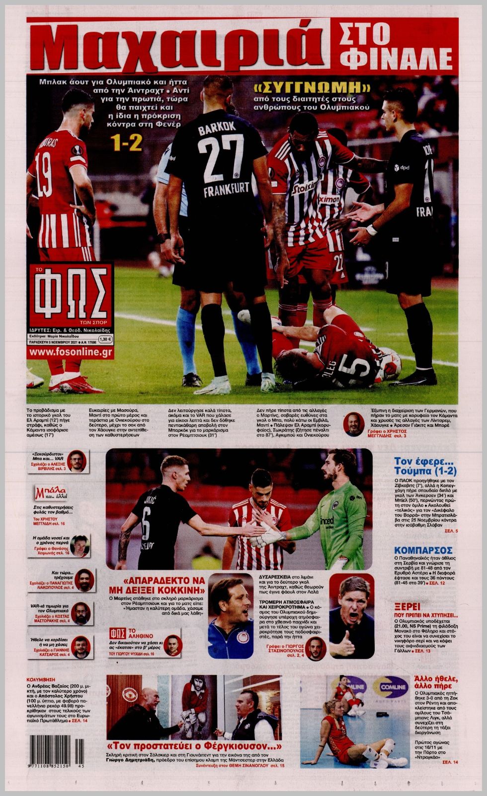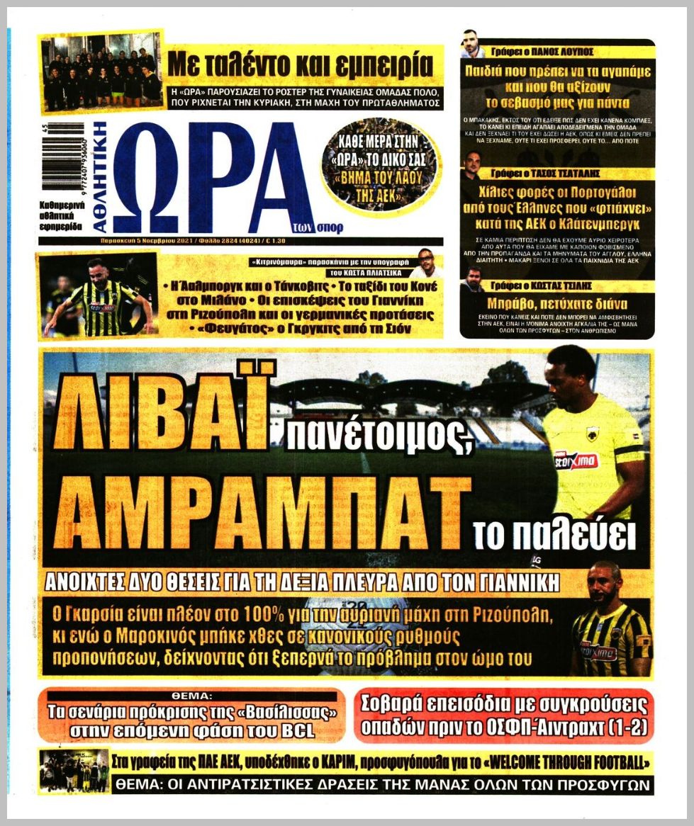 Τι αναφέρουν στα πρωτοσέλιδα οι αθλητικές εφημερίδες στις 5 Νοεμβρίου