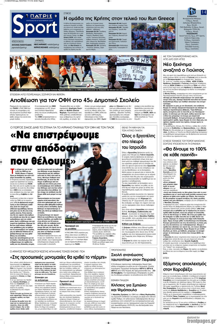 Πρωτοσέλιδα για την Παρασκευή 8 Νοεμβρίου 2019