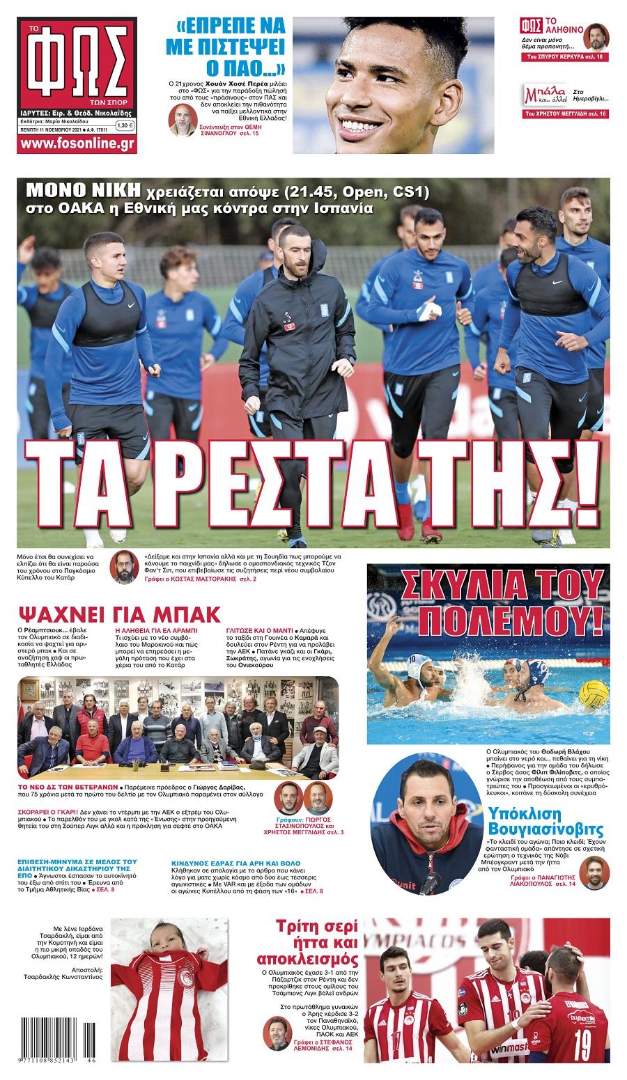 Πρωτοσέλιδα αθλητικών εφημερίδων για την Πέμπτη 11 Νοεμβρίου 2021. Τι αναφέρουν στη… βιτρίνα τους οι εφημερίδες σε Αθήνα και Θεσσαλονίκη.