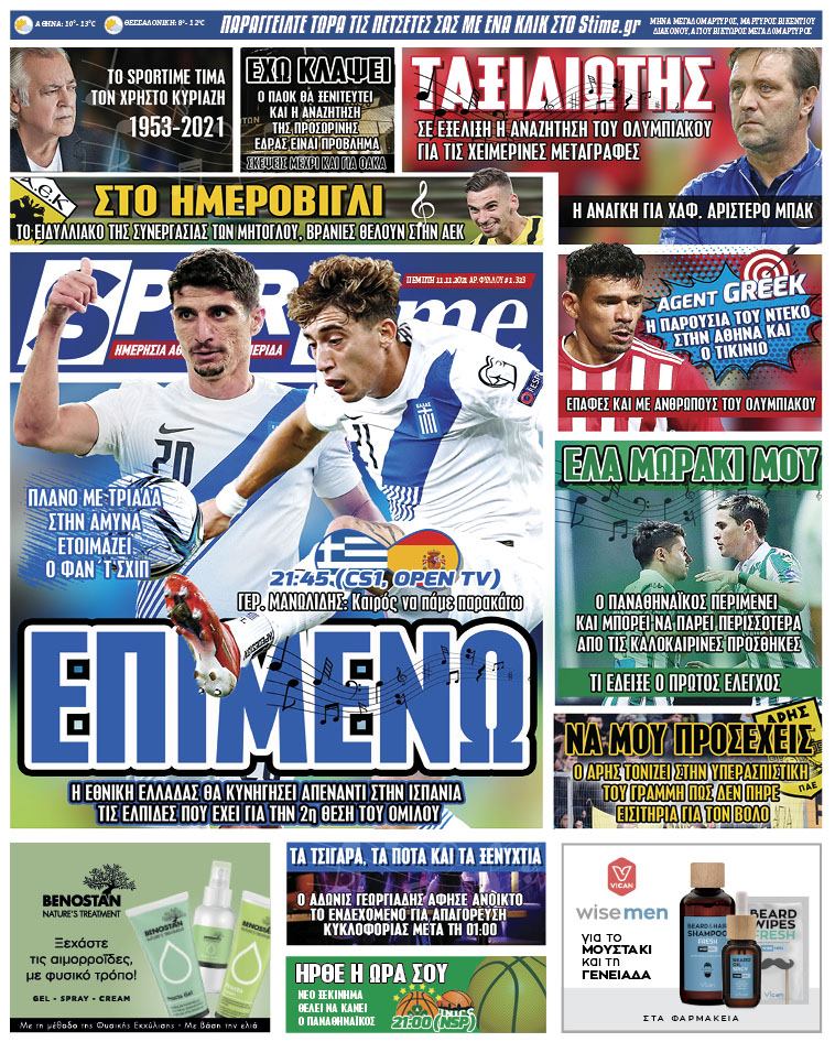 Τι αναφέρουν στα πρωτοσέλιδα οι αθλητικές εφημερίδες στις 11 Νοεμβρίου
