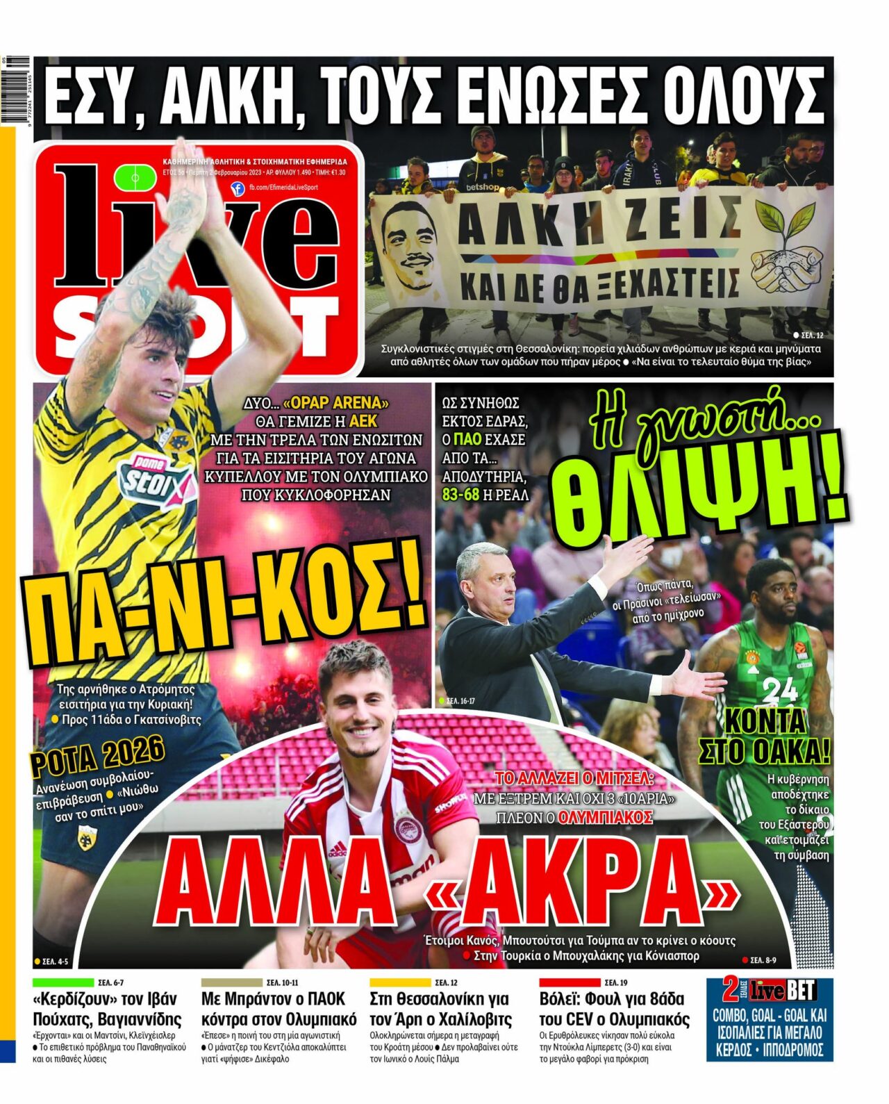 Πρωτοσέλιδα αθλητικών εφημερίδων για την Πέμπτη 2 Φεβρουαρίου 2023. Δείτε αναλυτικά τι αναφέρουν στη… βιτρίνα τους οι εφημερίδες.