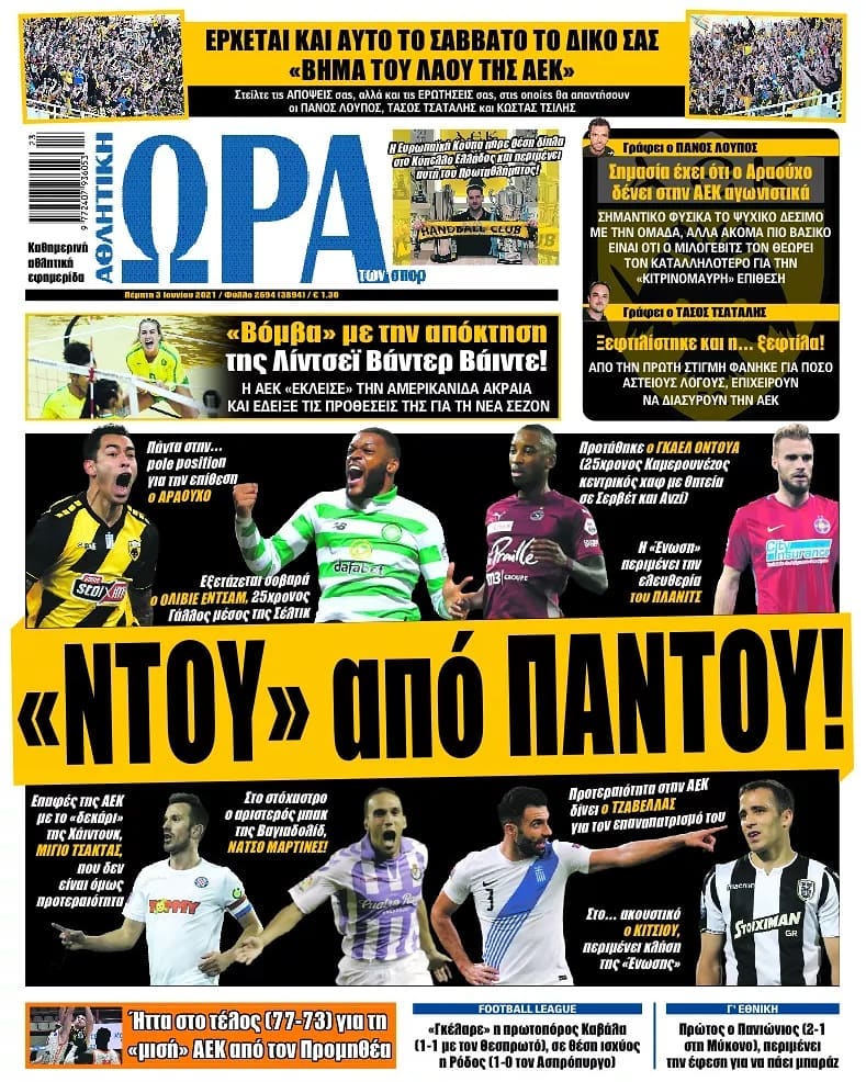 Πρωτοσέλιδα για την Πέμπτη 3 Ιουνίου 2021: Τι αναφέρουν στη... βιτρίνα τους οι αθλητικές εφημερίδες σε Αθήνα και Θεσσαλονίκη.
