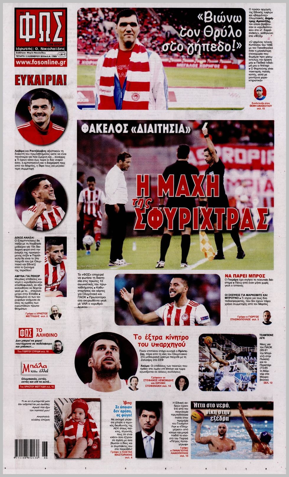 Πρωτοσέλιδα για την Τετάρτη 13 Νοεμβρίου 2019