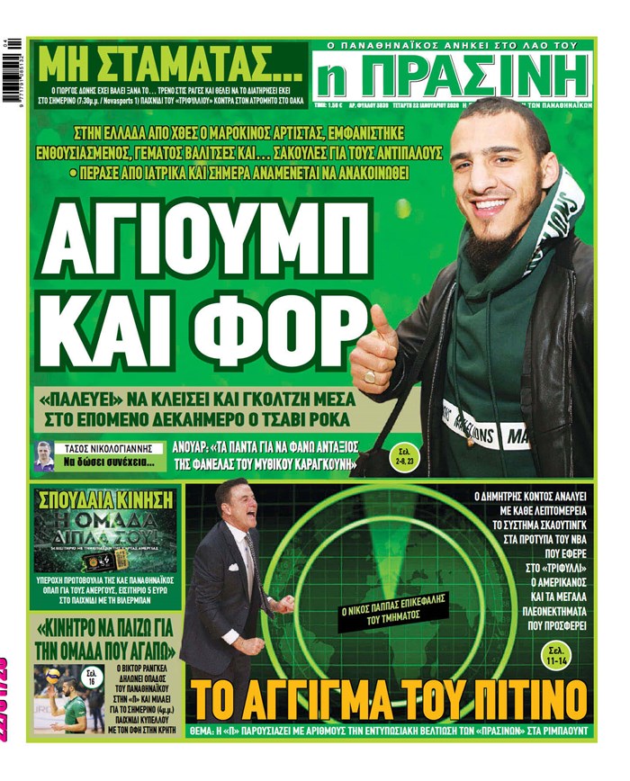 Πρωτοσέλιδα για την Tετάρτη 22 Ιανουαρίου 2020