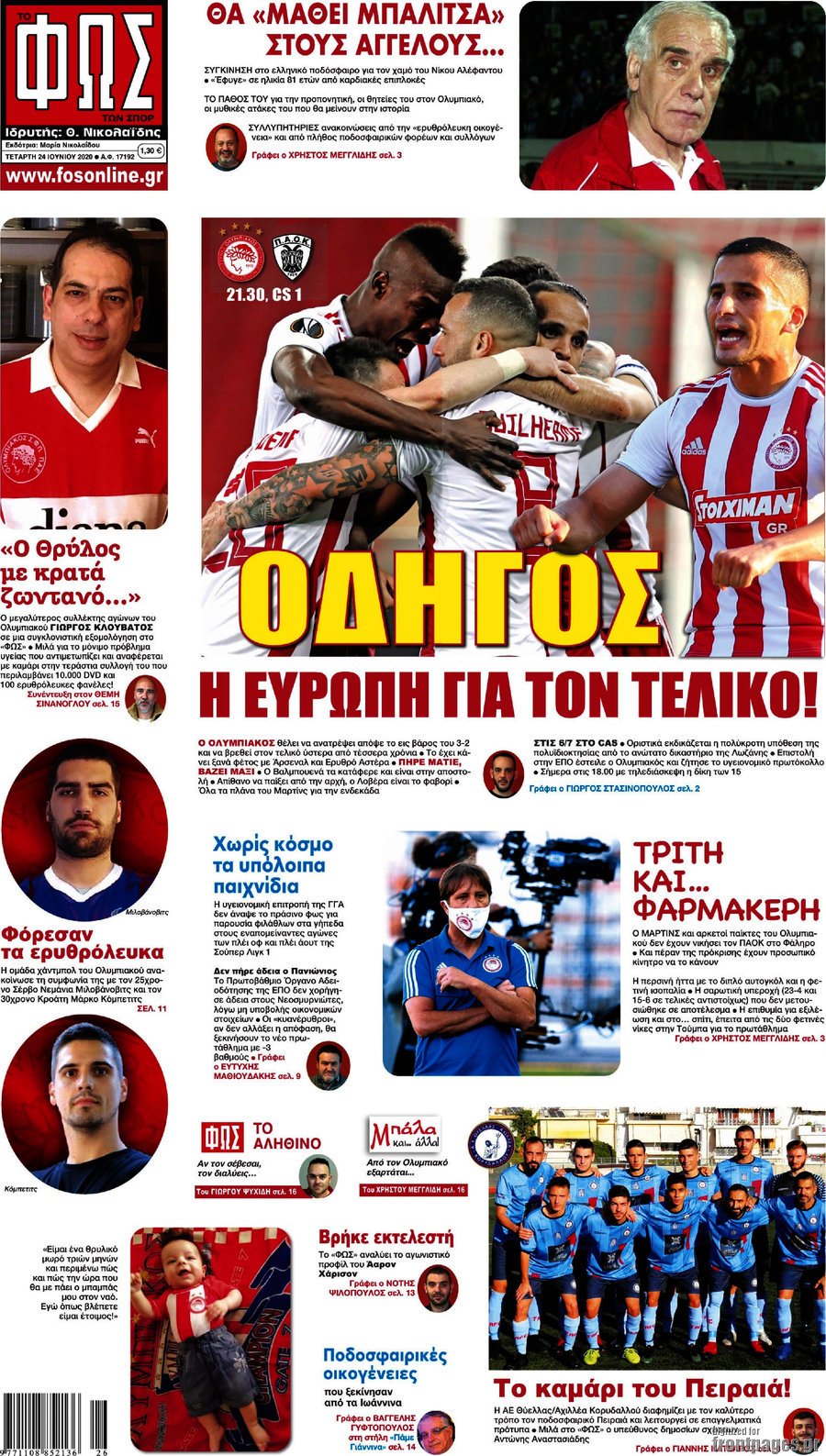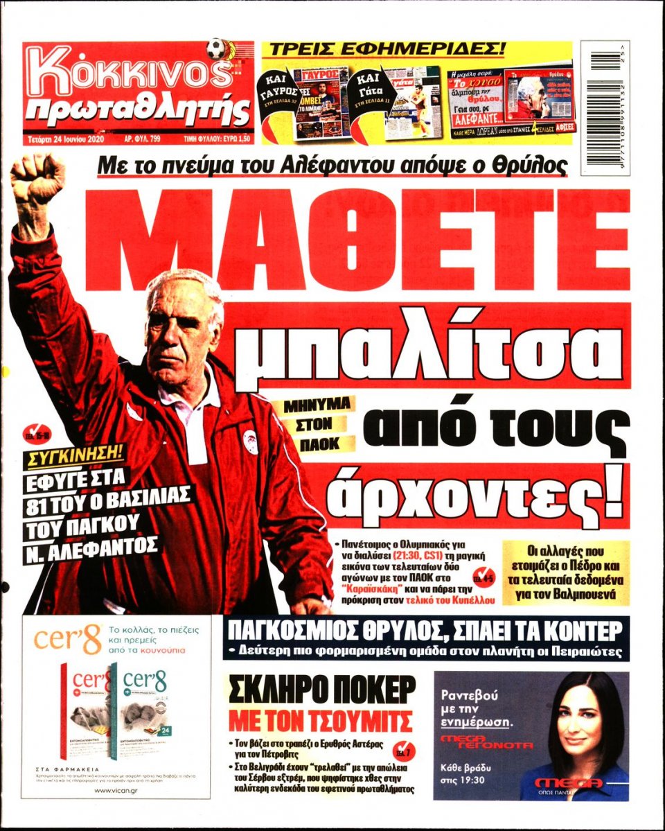 Πρωτοσέλιδα για την Τετάρτη 24 Ιουνίου 2020