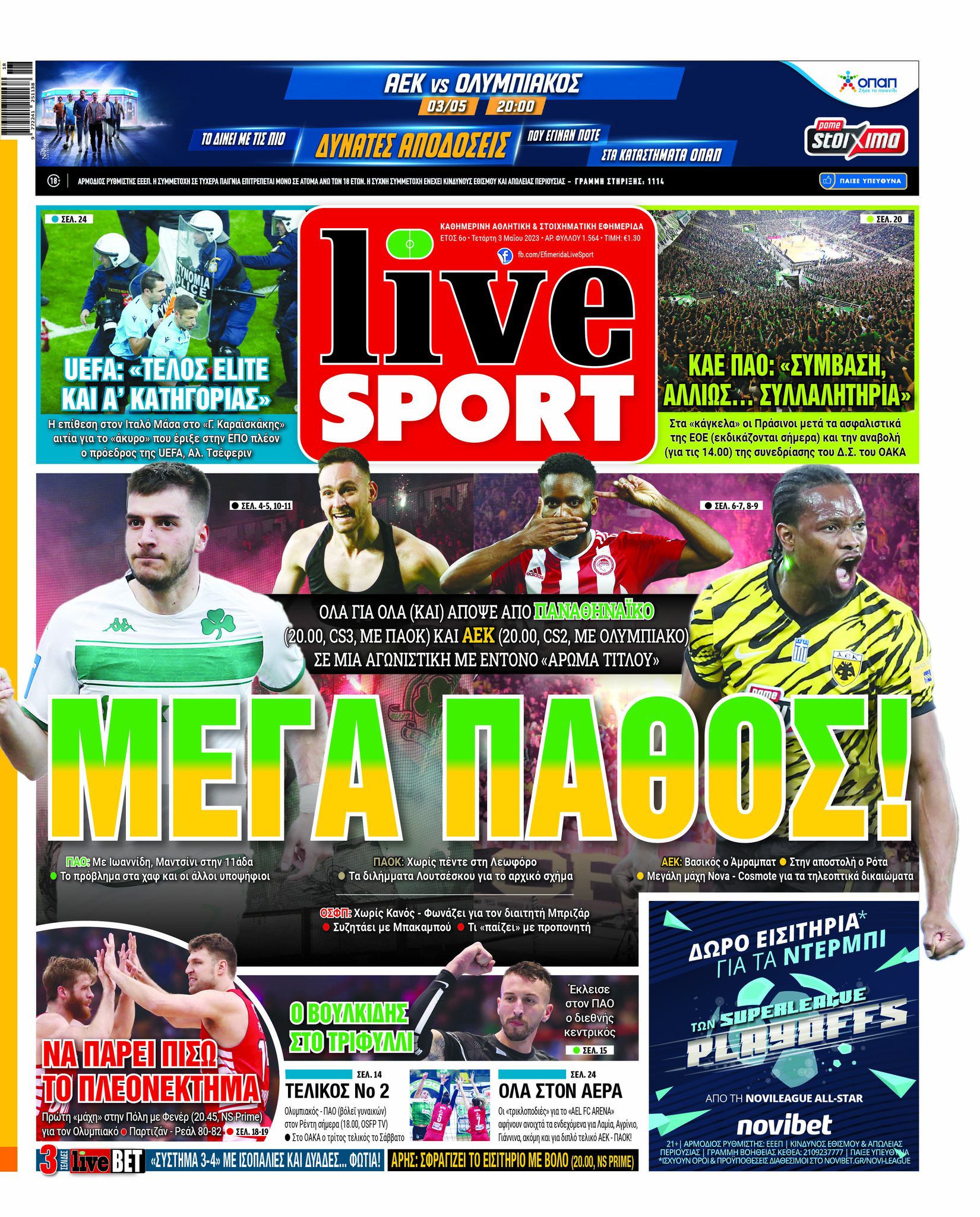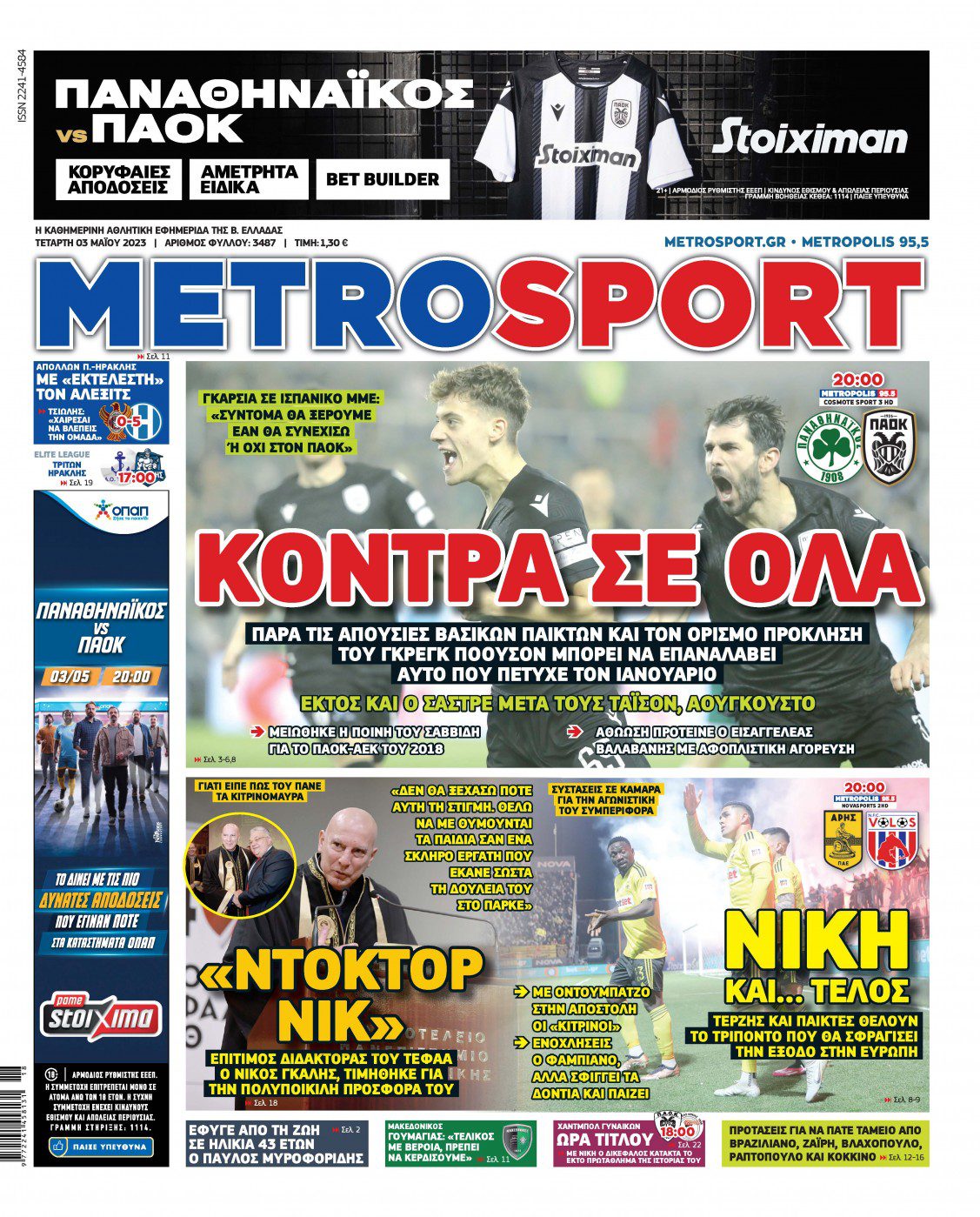 Πρωτοσέλιδα αθλητικών εφημερίδων για την Τετάρτη 3 Μαΐου 2023. Δείτε αναλυτικά τι αναφέρουν στη… βιτρίνα τους οι εφημερίδες.