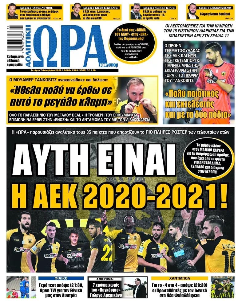 Πρωτοσέλιδα για την Tετάρτη 7 Οκτωβρίου 2020