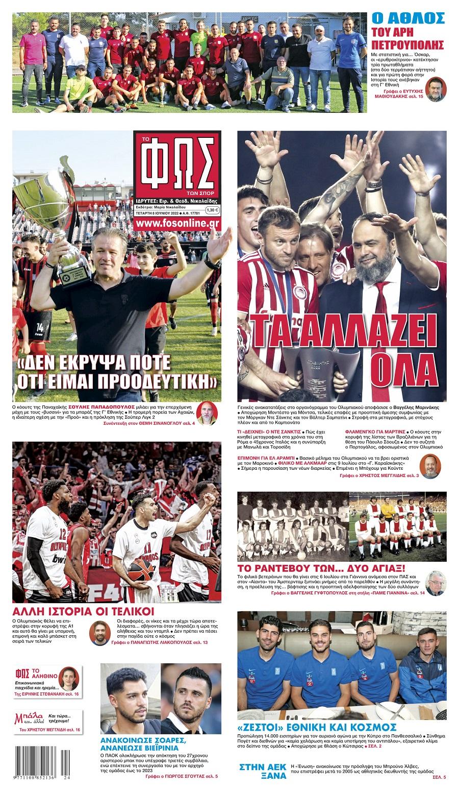 Πρωτοσέλιδα αθλητικών εφημερίδων για την Τετάρτη 8 Ιουνίου 2022. Δείτε αναλυτικά τι αναφέρουν στη… βιτρίνα τους οι εφημερίδες.