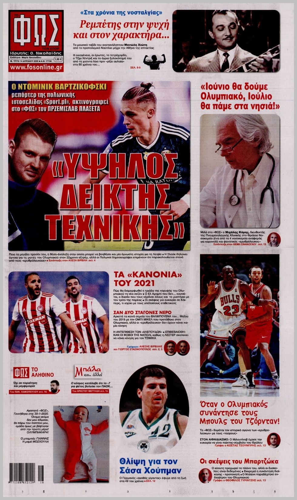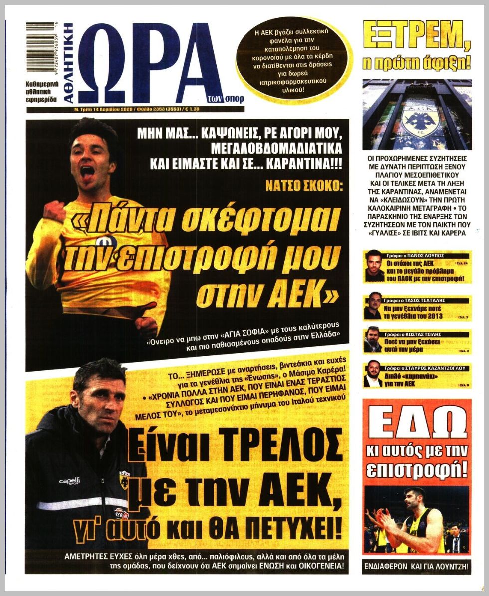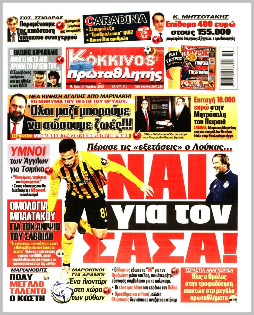 Πρωτοσέλιδα για την Τρίτη 14 Απριλίου 2020