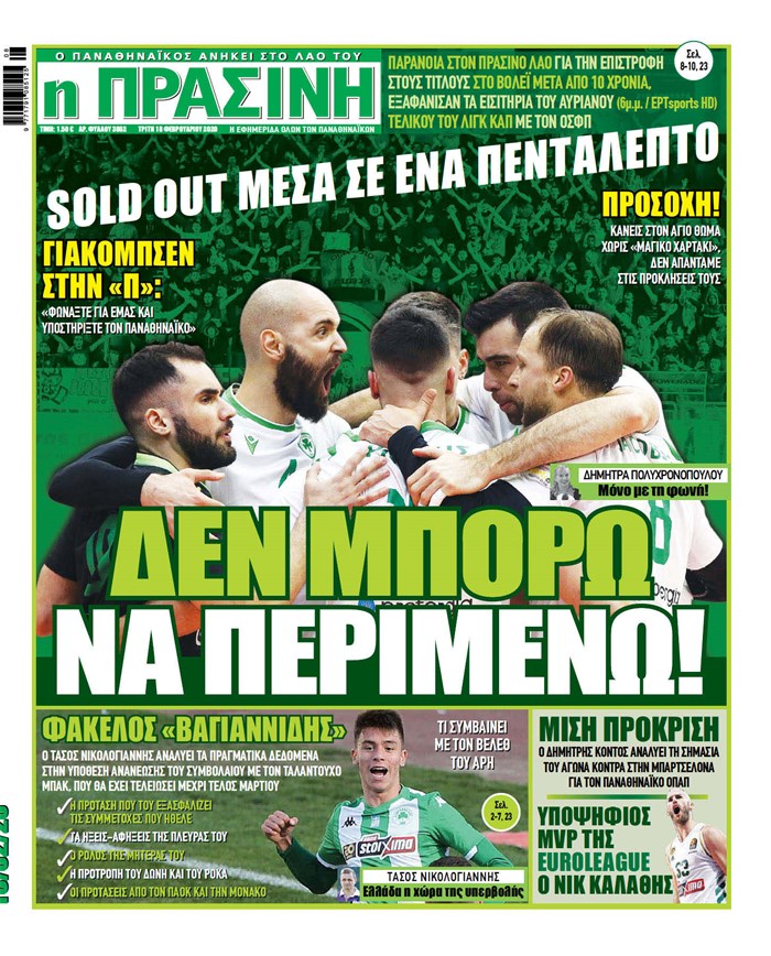 Πρωτοσέλιδα για την Τρίτη 18 Φεβρουαρίου 2020 Κάντε follow στο Sportime Κάντε like στην σελίδα του Sportime στο Facebook Ακολουθήστε το Sportime στο Instagram