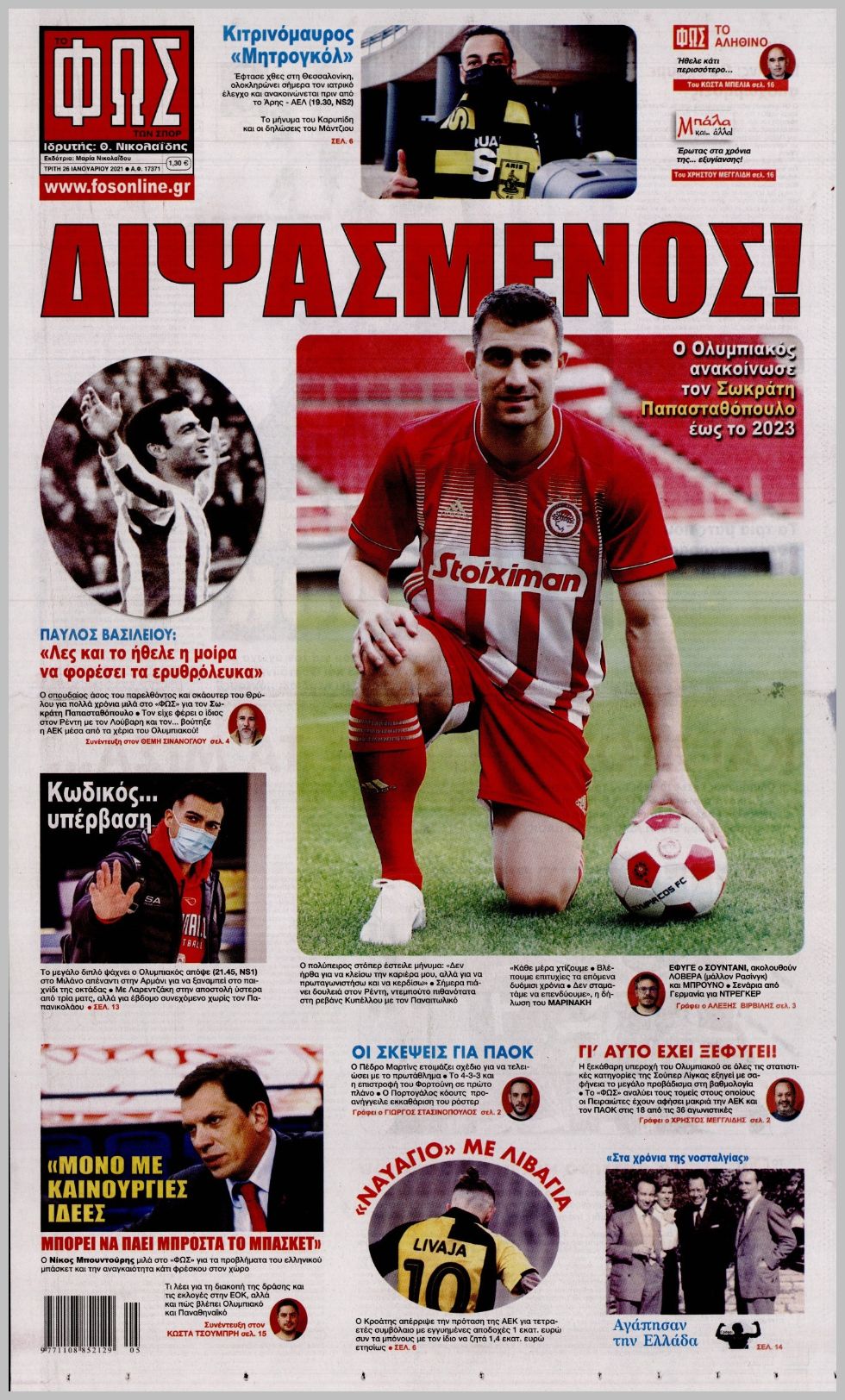 Πρωτοσέλιδα για την Τρίτη 26 Ιανουαρίου 2021