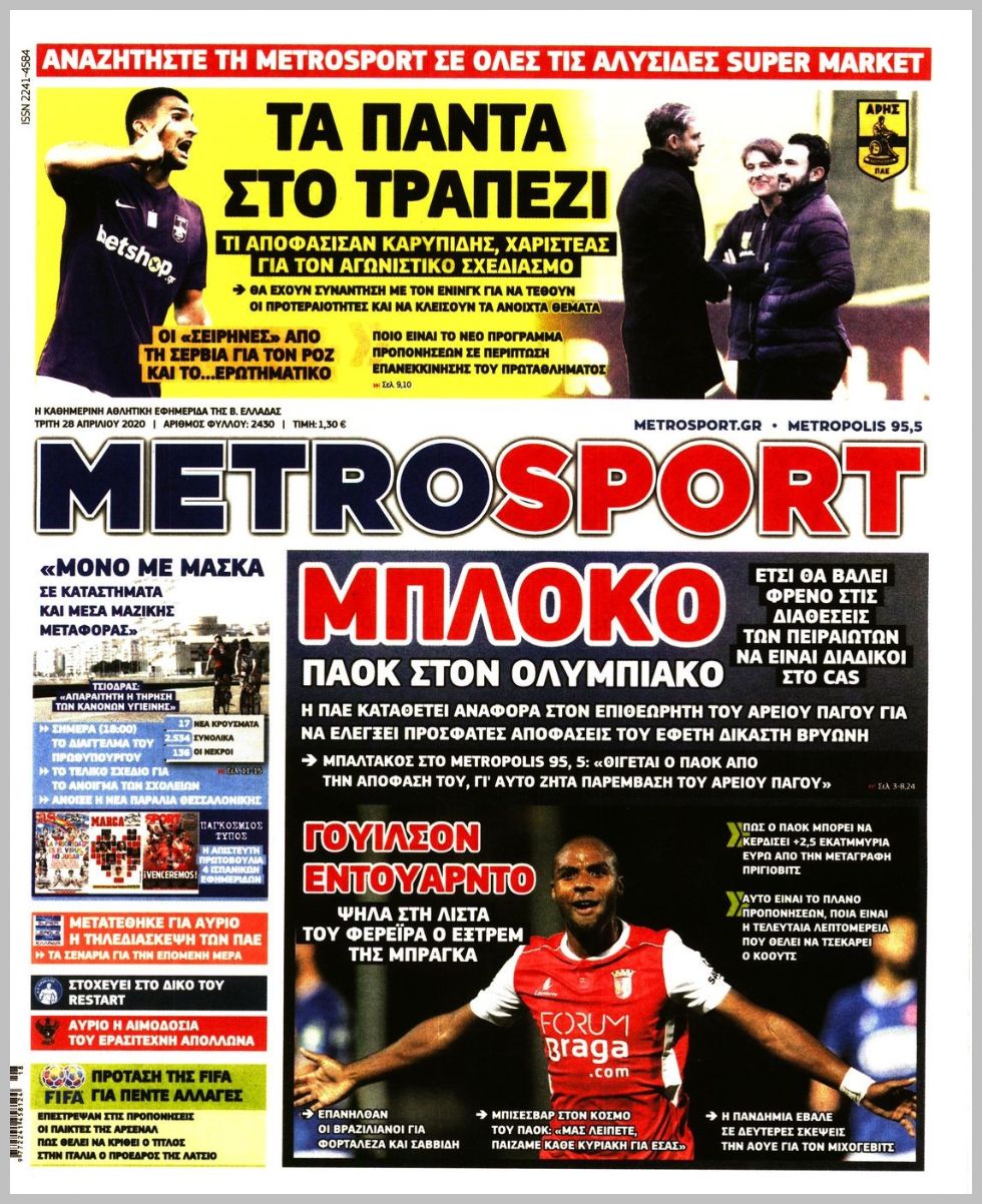 Πρωτοσέλιδα για την Τρίτη 28 Απριλίου 2020