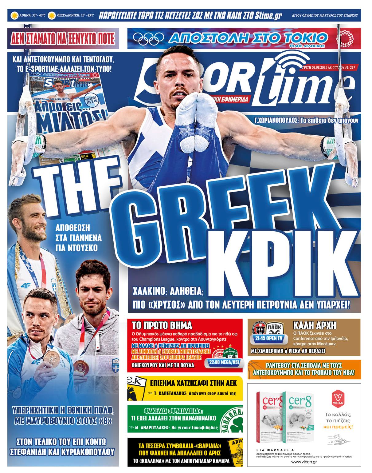 Πρωτοσέλιδα για την Τρίτη 3 Αυγούστου 2021: Τι αναφέρουν στη… βιτρίνα τους οι αθλητικές εφημερίδες σε Αθήνα και Θεσσαλονίκη.