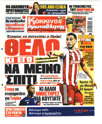 Πρωτοσέλιδα για την Τρίτη 31 Μαρτίου 2020