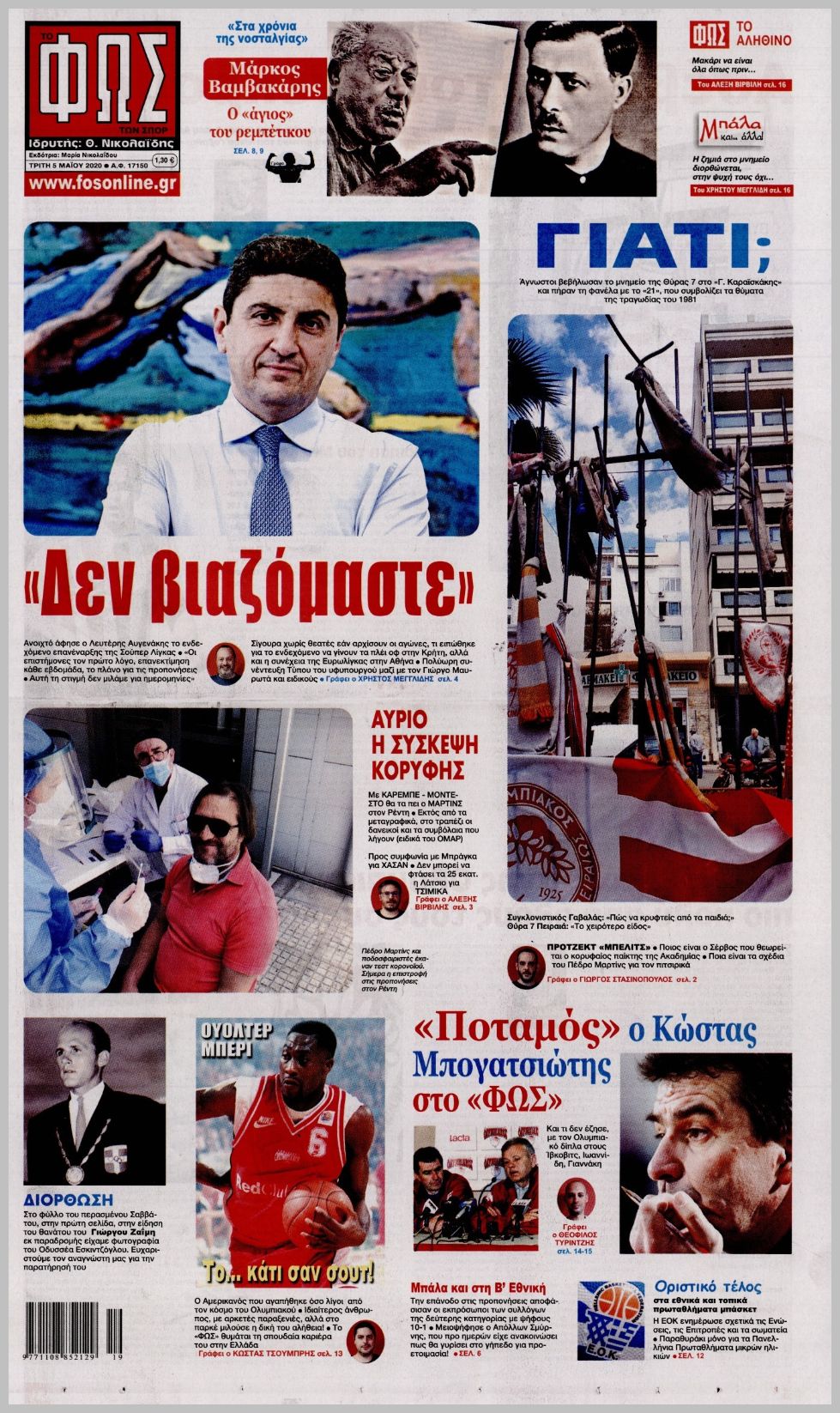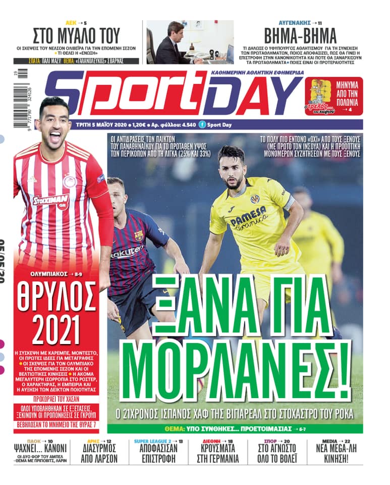 Πρωτοσέλιδα για την Τρίτη 5 Μαΐου 2020