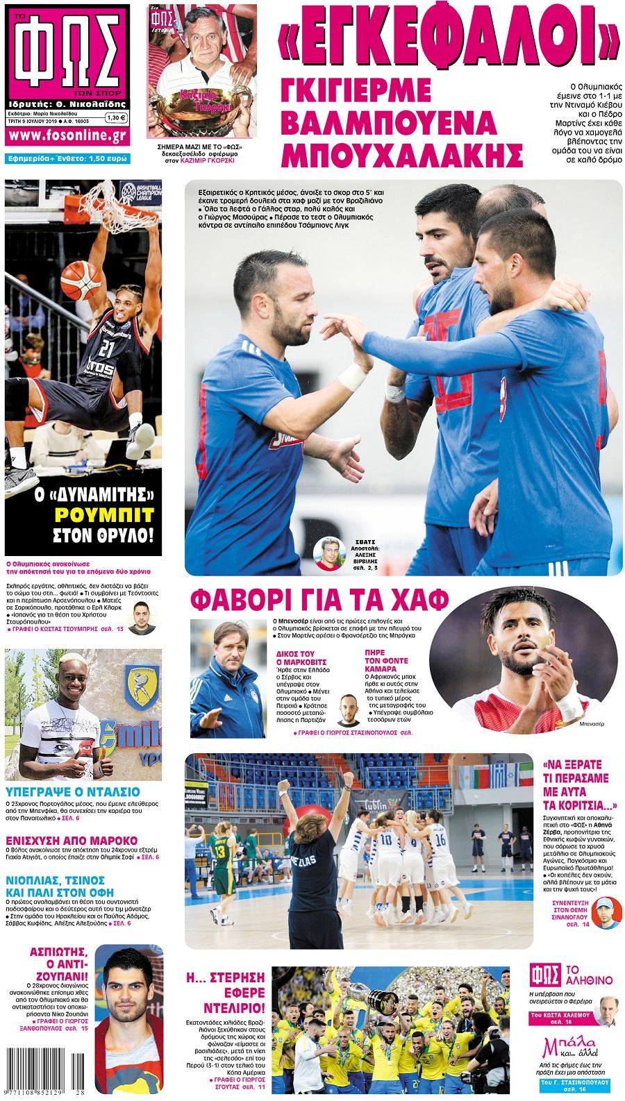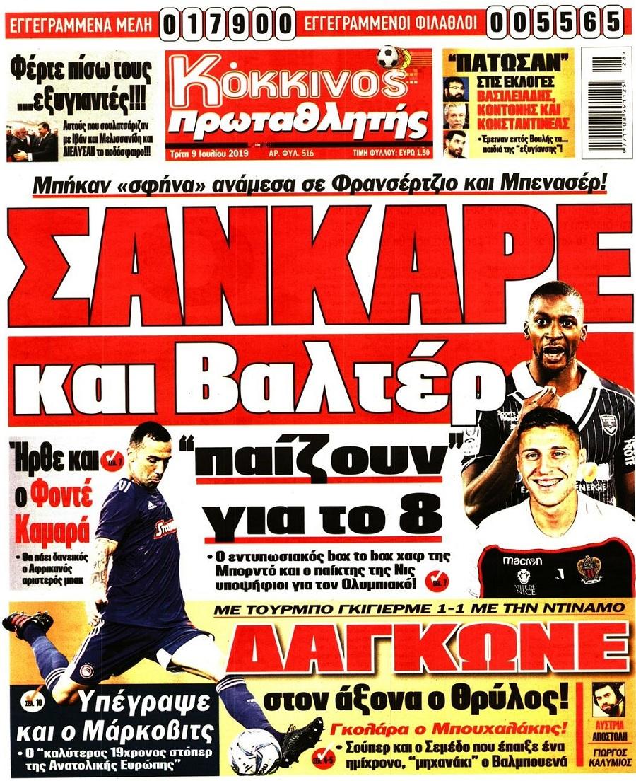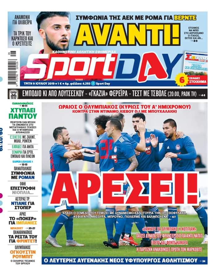 Διαβάστε τι αναφέρουν τα πρωτοσέλιδα των αθλητικών εφημερίδων για την Τρίτη 9 Ιούλιου 2019