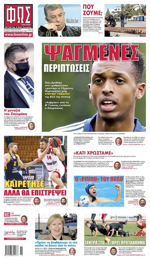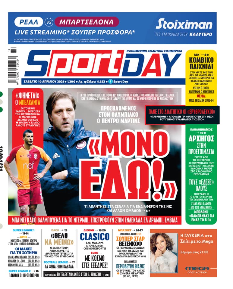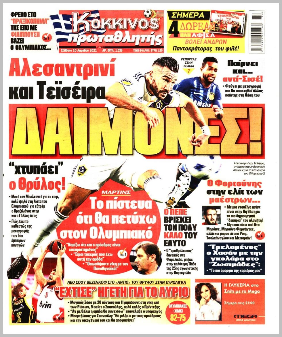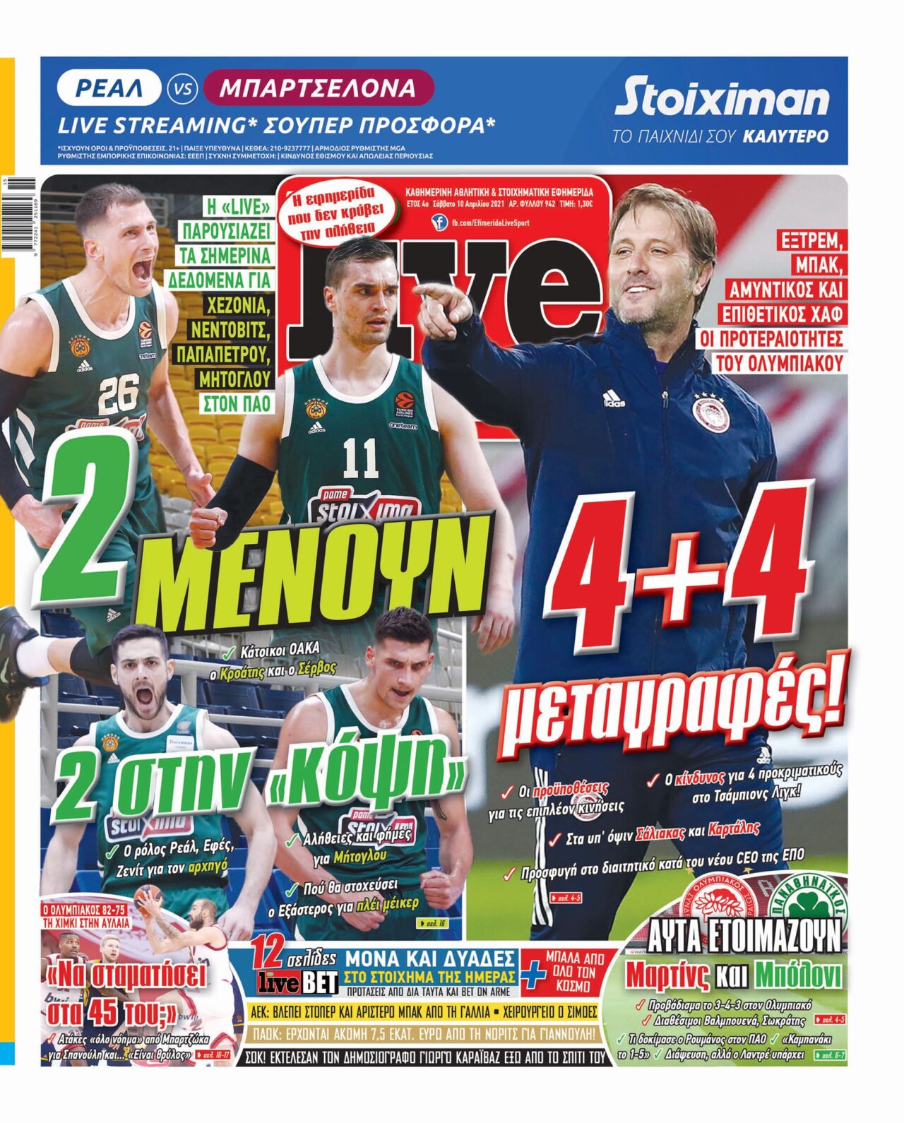 Δείτε τα αθλητικά πρωτοσέλιδα για το Σάββατο 10 Απριλίου 2021.