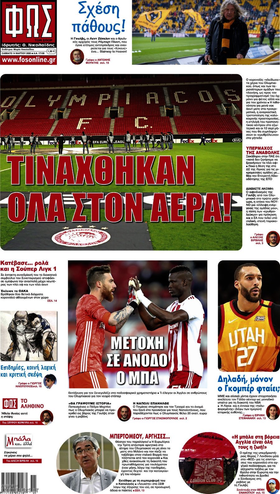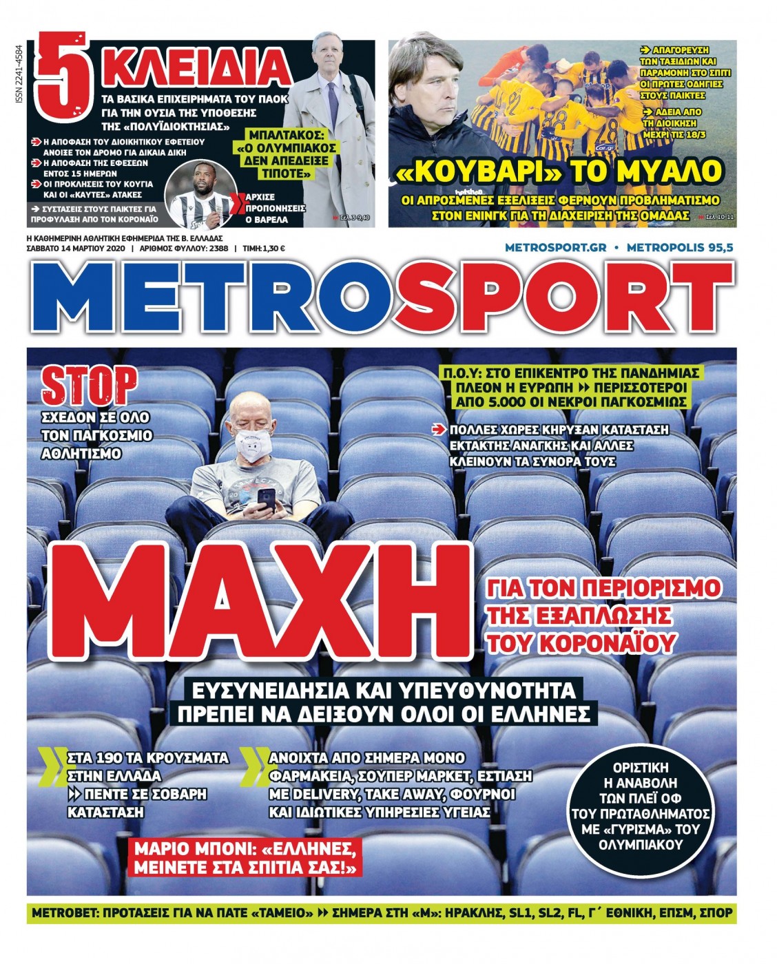 Πρωτοσέλιδα για το Σάββατο 14 Μαρτίου 2020