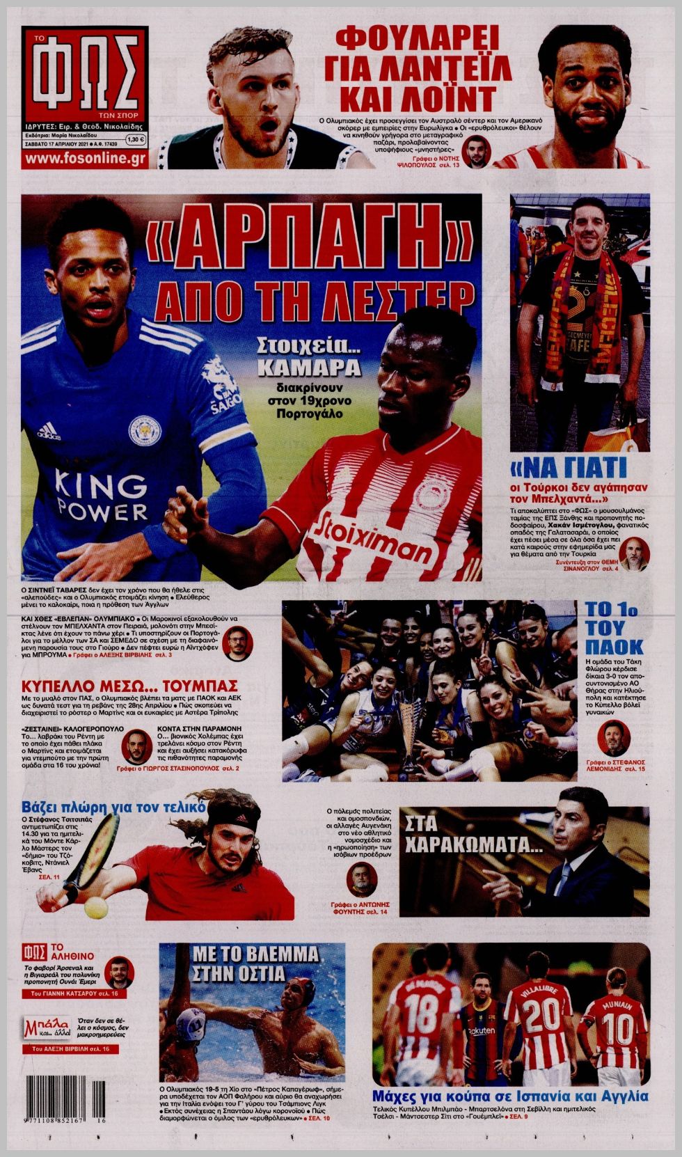 Δείτε τα αθλητικά πρωτοσέλιδα για το Σάββατο 17 Απριλίου 2021.