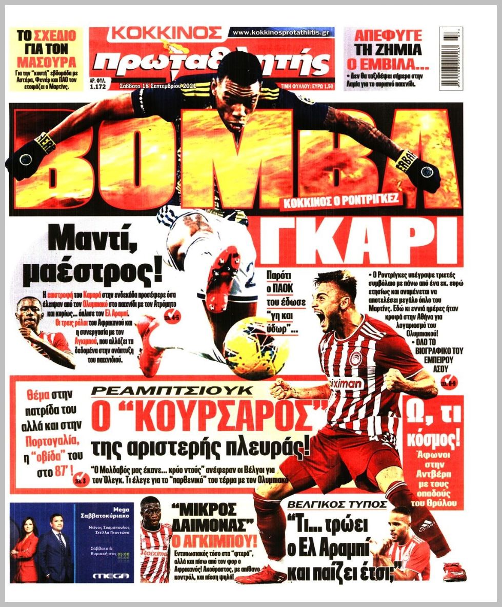 Τι αναφέρουν στα πρωτοσέλιδα οι αθλητικές εφημερίδες στις 18 Σεπτεμβρίου
