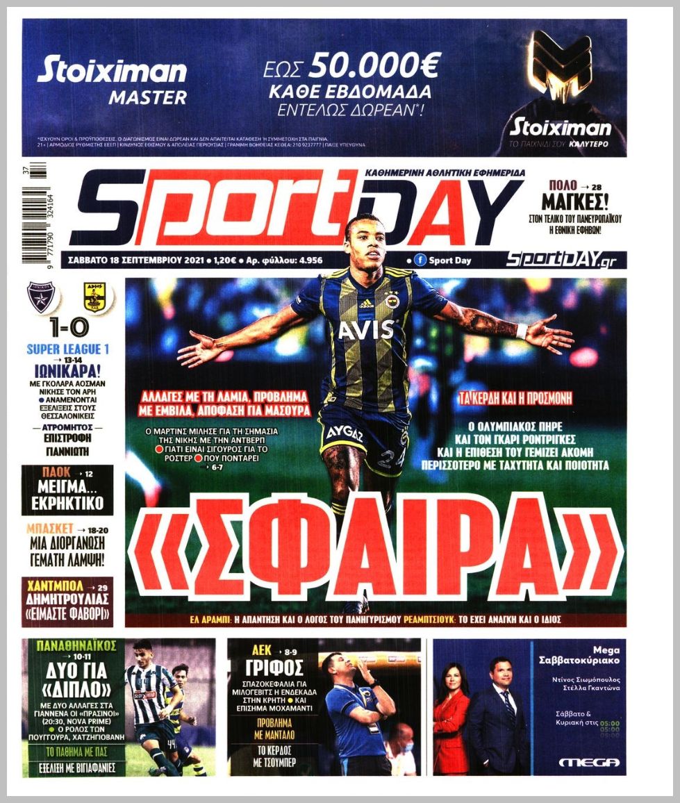Πρωτοσέλιδα για το Σάββατο 18 Σεπτεμβρίου 2021. Τι αναφέρουν στη… βιτρίνα τους οι αθλητικές εφημερίδες σε Αθήνα και Θεσσαλονίκη.