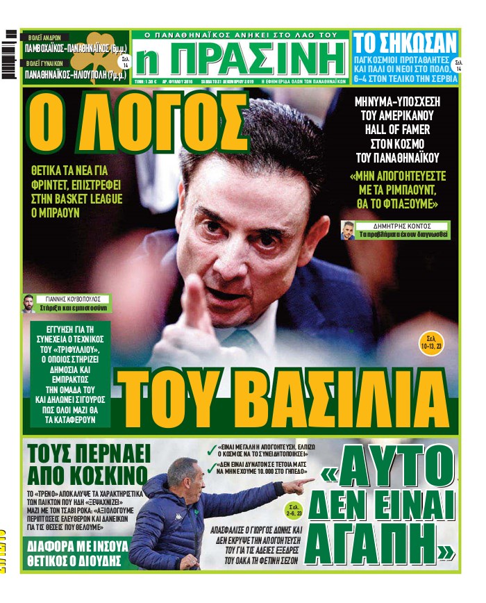 Πρωτοσέλιδα για το Σάββατο 21 Δεκεμβρίου 2019 Κάντε follow στο Sportime Κάντε like στην σελίδα του Sportime στο Facebook Ακολουθήστε το Sportime στο Instagram